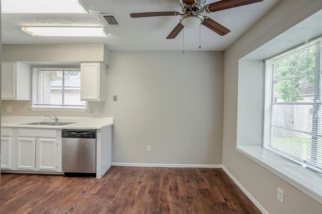 Charming 3-bedroom, 2-bathroom home with a 2-car garage located in the established Birnam Wood community. Enjoy a spacious front and backyard with lush grass and a wood fence providing privacy. Inside, the entryway features garage access with laundry hookups and a water heater, along with a convenient coat closet leading into the open living area. The living room offers a cozy fireplace and flows into the kitchen with white cabinetry, white countertops, stainless steel appliances, and a breakfast nook overlooking the backyard. The primary suite includes a bathroom with dual sinks, a standing shower, and a spacious closet. Two secondary bedrooms share a full hall bath with a shower/tub combo. This well-maintained home is perfect for comfortable living and entertaining—don’t miss it! Book your tour today!