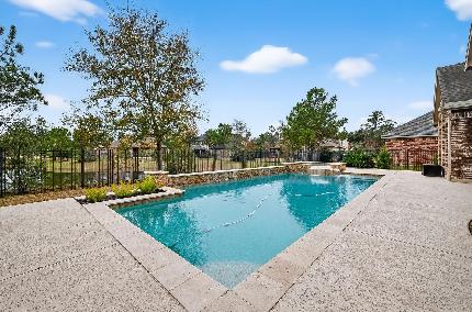 Soaring ceilings! Double door entry! Spiral Wrought iron & wood staircase in entry! 5 bedrooms w/ 2 beds down! Real 3 car garage! 1/2 bath up for Game room (with walk in wet bar and mini frig) & True Media room w/ surround sound! 1/2 bath down for guests! Backyard Oasis w/ Pool, spa, outdoor kitchen and large covered back porch PLUS own Pool Bath! Return staircase! Hand scraped wood floors and Tile floors throughout downstairs area + Master and Game room have hand scraped wood floors as well! Large island kitchen w/ SS appliances including double ovens, built in refrigerator + Scots Ice Machine! Butlers pantry w/ beverage cooler! Kitchen overlooks family room w/ Vaulted Wood beams on ceiling + stone gas log fireplace! Wood shutters are stunning! Study with French doors, hand scraped wood plus wood beams on Vaulted ceiling! Large laundry room w/ Sink + MUD area off garage w/ built ins! Epoxy Floors in Garage!