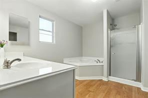 Welcome home to this beautifully updated 4-bedroom residence, perfectly positioned on a spacious corner lot at the entrance of a quiet cul-de-sac. Freshly painted with brand-new flooring and carpet throughout, this home is move-in ready. The first floor features an open-concept layout, seamlessly connecting the kitchen, dining area, and expansive living space—ideal for both everyday living and entertaining. The primary suite offers a relaxing retreat with an ensuite bathroom, complete with a large garden tub, separate shower, and an oversized vanity. Step outside to a private backyard surrounded by a brand-new fence and a cozy patio—perfect for weekend BBQs and family gatherings. Conveniently located near major freeways, top-rated schools, and exciting new shopping centers, this home has it all. Don’t miss your chance to make it yours!