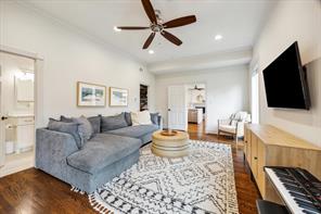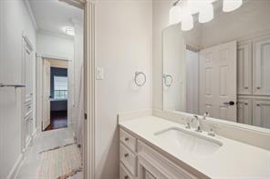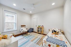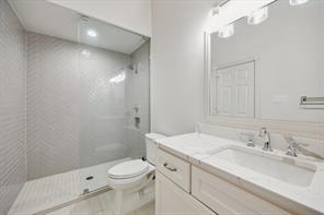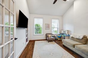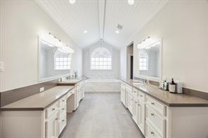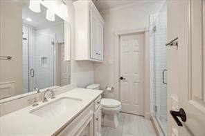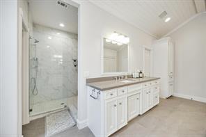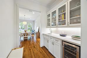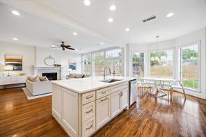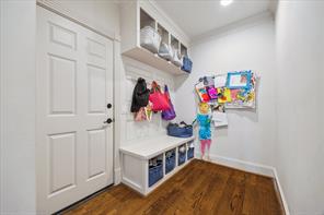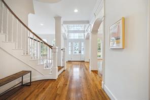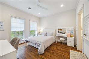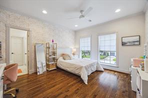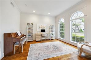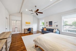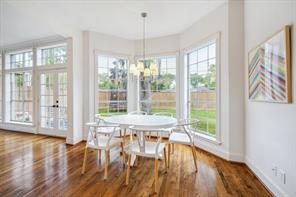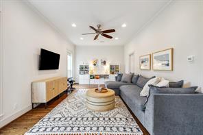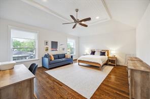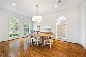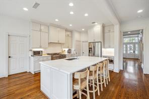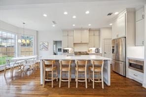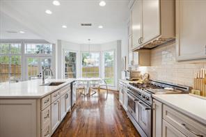 Nestled in the heart of Bellaire, this stunning custom-built 5-bedroom home offers exceptional design, luxurious finishes, & a flexible floorplan ideal for today’s lifestyle. The open living space is light & bright, featuring gorgeous wood floors & expansive windows throughout. The gourmet kitchen includes quartz countertops, a large island w/ breakfast bar seating, premium stainless appliances, & 48" Bertazzoni range. A butler’s pantry w/ glass-front cabinets adds storage & style. The 1st floor also includes a gorgeous dining room, living room, den, spacious bedroom w/ en-suite bath + a mudroom w/ built-ins. Primary suite offers vaulted ceiling & spa-like bath w/ dual vanities, soaking tub, frameless glass shower. Upstairs are three additional bedrooms and a study/ home office. Two utility rooms—one on each floor—offer added convenience. Enjoy outdoor living w/a wood patio deck and generous backyard—ready for entertaining or future pool. Zoned to Bellaire High. No detail overlooked!