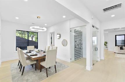Nestled in the heart of Bellaire, this stunning custom-built 5-bedroom home offers exceptional design, luxurious finishes, & a flexible floorplan ideal for today’s lifestyle. The open living space is light & bright, featuring gorgeous wood floors & expansive windows throughout. The gourmet kitchen includes quartz countertops, a large island w/ breakfast bar seating, premium stainless appliances, & 48" Bertazzoni range. A butler’s pantry w/ glass-front cabinets adds storage & style. The 1st floor also includes a gorgeous dining room, living room, den, spacious bedroom w/ en-suite bath + a mudroom w/ built-ins. Primary suite offers vaulted ceiling & spa-like bath w/ dual vanities, soaking tub, frameless glass shower. Upstairs are three additional bedrooms and a study/ home office. Two utility rooms—one on each floor—offer added convenience. Enjoy outdoor living w/a wood patio deck and generous backyard—ready for entertaining or future pool. Zoned to Bellaire High. No detail overlooked!