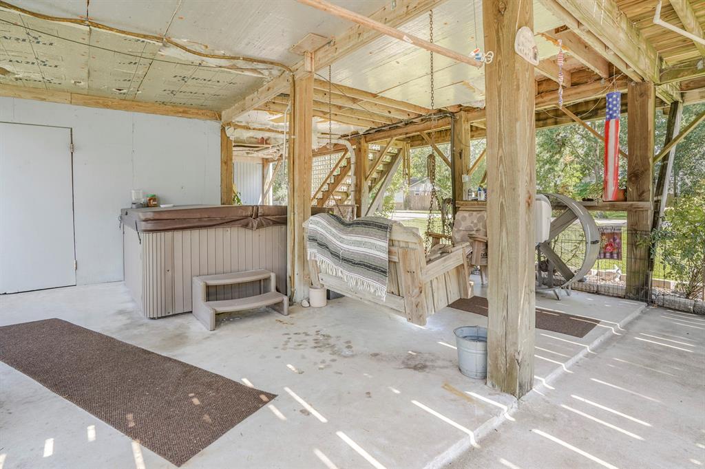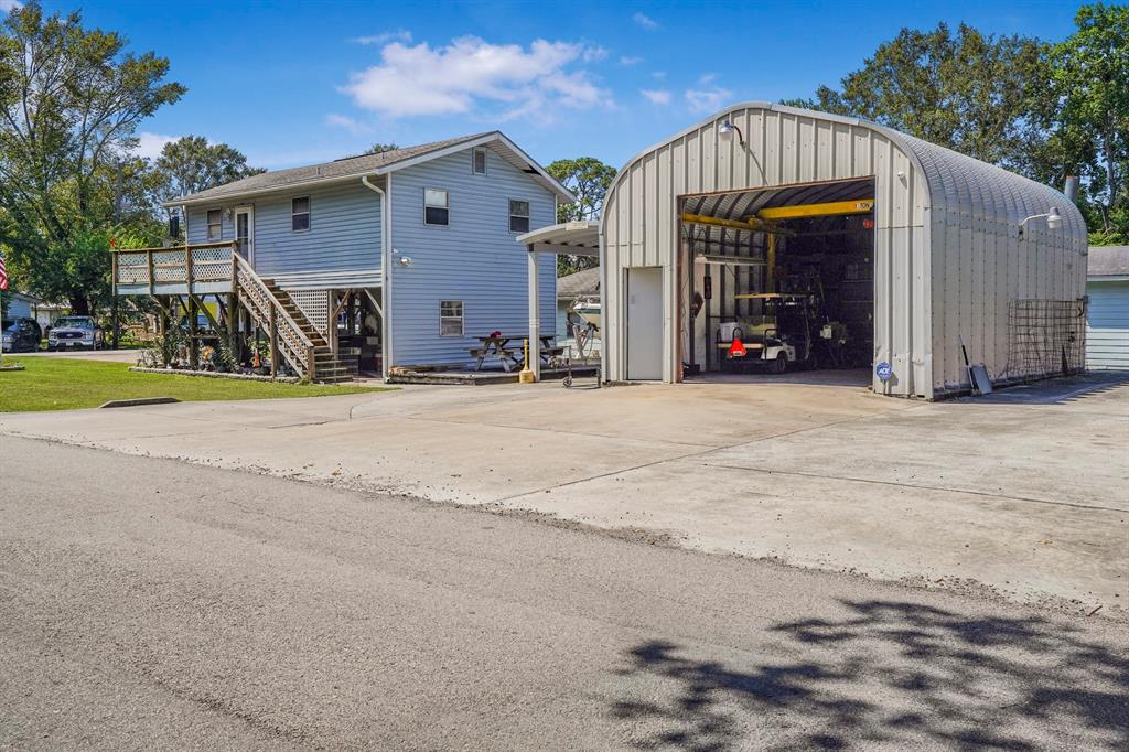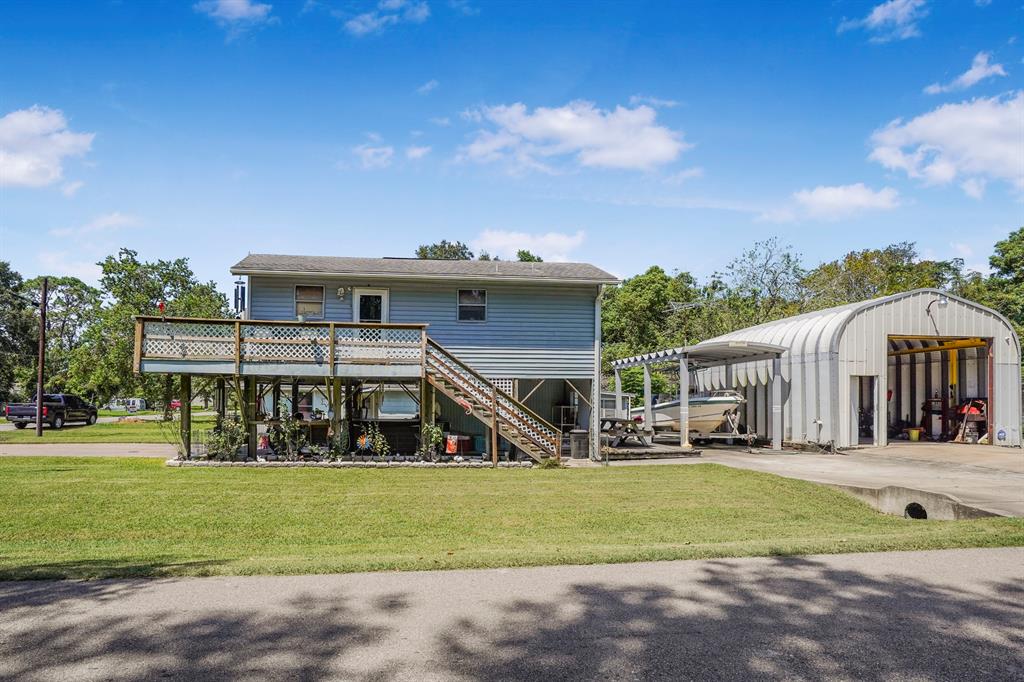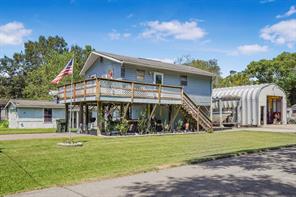 Escape to your bayside paradise, just half a mile from a public boat ramp on the sparkling Trinity Bay. Located 4 miles from the exciting Kemah Boardwalk entertainment district, 10 miles from NASA Johnson Space Center, and 20 minutes from the attractions of Galveston Island this stilted home is the perfect hub for you family adventures and short term rental investment, while providing you peace of mind from flooding. This sportsman's paradise boasts an oversized workshop/garage with including a 1 ton hoist and a wood burning fireplace, paved RV parking large enough for the biggest motor home, a 50 and 30 amp RV hook up, covered boat parking, and ample room to park all of your vehicles and toys. Key features include: outdoor/covered hot tub, pre wired for whole home generator, 30 and 50 amp RV hookup, outdoor deck and patio, short term rental investment opportunity.