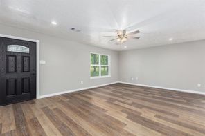 This stunning, fully renovated 3-bedroom, 2-bathroom home sits on 1.63 acres and offers modern upgrades, thoughtful design, and plenty of space inside and out. The open-concept layout features all new flooring, and LED can lights throughout for a bright, contemporary feel. The beautifully updated kitchen boasts new white soft-close cabinetry, quartz countertops, a breakfast bar, gas stove, and all new stainless-steel appliances—ideal for cooking and entertaining. Both bathrooms are fully remodeled—one with a luxurious rainfall showerhead, the other with a stylish tub/shower combo. Major system upgrades include brand-new windows, new insulation, new ductwork, and a new AC unit for year-round comfort and efficiency. Outside, enjoy the peaceful setting, beautiful landscaping, and a large yard perfect for relaxing, gardening, or gatherings. This move-in ready home offers comfort, space, and lasting value. Don’t miss out—schedule your private showing today!
