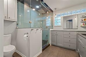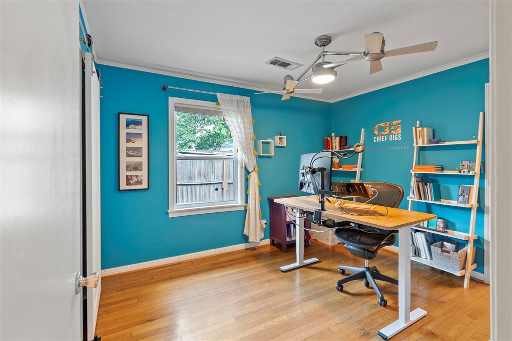 This beautifully updated 4-bedroom, 3-bathroom home offers 2,607 sq ft of stylish living space on a quiet, tree-lined cul-de-sac, and sits on a spacious 9,100 sqft lot. Inside, the open, light-filled floor plan features hardwood floors and a warm, inviting color palette. The kitchen boasts granite countertops and ample cabinetry—perfect for everyday use or entertaining. The primary suite features a walk-in closet and a renovated en-suite bath, while a second bedroom also has a private bath, ideal for guests or multi-generational living. Two additional bedrooms provide flexibility for family, office, or hobbies. The converted single-car garage now serves as a sleek office or workshop, complete with storage and a sink. Enjoy the peaceful, fully fenced backyard with mature trees and a covered patio—perfect for relaxing or entertaining. Recent upgrades include 24 solar panels (2017, 10,600 kWh/year), a new HVAC system (2018), a tankless water heater (2019), and a new roof (2022).