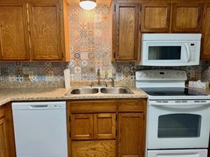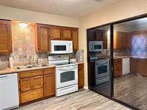Lovely 2 Bedroom, 1 Bath Townhome in Westwood Shores. Kitchen offers Solid surface stove/oven, built in microwave, nice cabinetry, vinyl flooring, Enclosed area off of kitchen that offers extra storage, and doors that leads to back yard area.