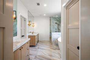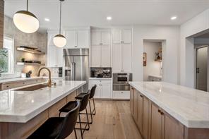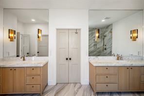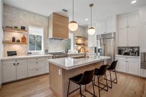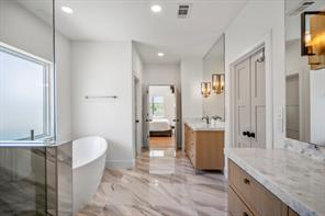 MOTIVATED SELLER. Gorgeous high quality home on a beautiful corner lot across from acclaimed Kolter Elem! Spectacular curb appeal with mahogany front door, copper gas lanterns, and slurried brick. This 5-bed 5-bath 5,511 sq ft home includes French oak engineered wood floors, white oak beamed ceiling, paneled office, formal dining room with custom wall design, 2 wine vaults.Open concept of kitchen, living room, and eating. The Chefs kitchen includes double white oak islands and marble countertops. Living room includes slider doors, fireplace with marble surround, and a wine bar. Massive game room with separate entrance that could be made a guest apartment. Covered back patio includes an outdoor kitchen with grill, fridge, sink, storage, and television with electric shade. Backyard is fully turfed with putting green. Primary suite includes an accent wall, oak ceiling and upscale ensuite w/Italian porcelain with huge closet! All bedrooms include ensuite baths! CAD wire security system.