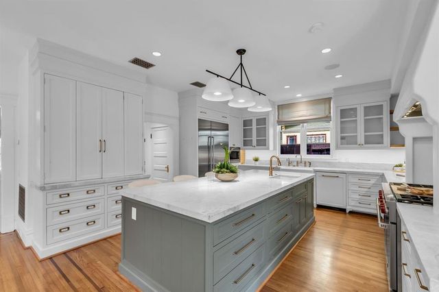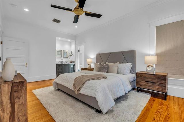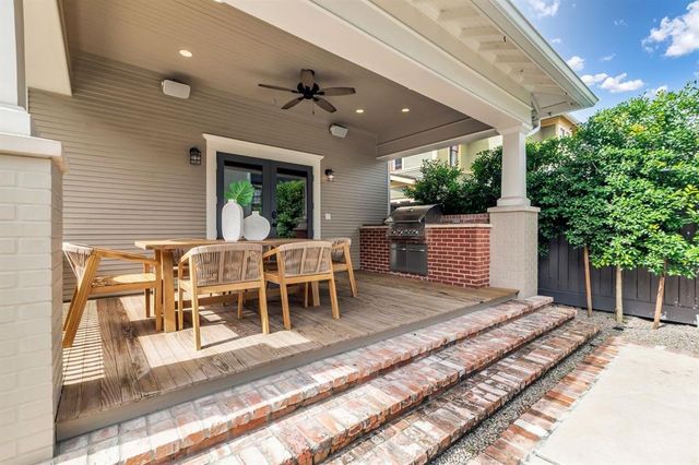 Stunning 1912 Montrose Craftsman on 7,000 SF corner lot in desirable Avondale. Grand 37’ long front porch, elegant entry, high ceilings & original hardwoods w/mahogany inlays. First-floor living, gas fireplace & designer lighting. Chef’s kitchen includes granite counters, custom cabinetry, Sub-Zero fridge, 48” Wolf range, & Venetian plaster hood vent. Ideal home for entertaining - stunning bar area w/wine fridge, ice maker, & beverage cooler. Primary suite w/treehouse-like views, bonus room (study, nursery, or gym), coffee/wine bar, spa-style bath, & custom dressing room w/37 linear feet of illuminated hanging bar space. Home fully updated w/modern electrical, HVAC, and plumbing systems (including Flow Logic premium leak detection & water shutoff solution). Backyard covered dining, built-in stainless grill, mosquito system, & smart irrigation. Oversized garage w/AC, epoxy floor, & 640 SF guest apartment above. Incredible Montrose location—walk to 24+ restaurants. A true showplace!