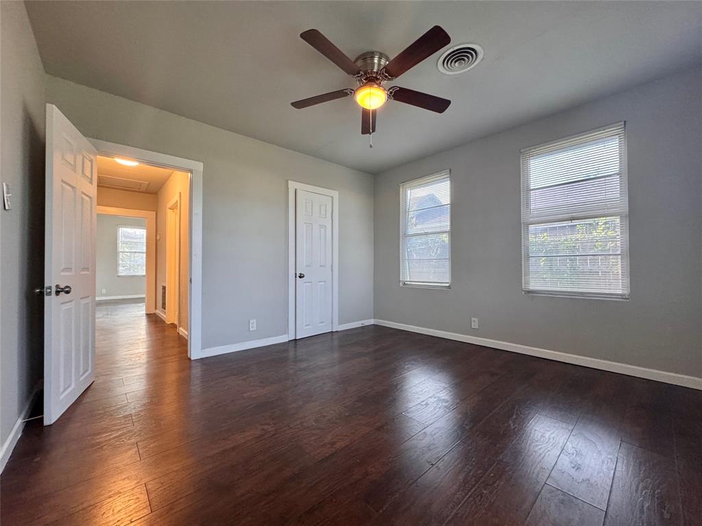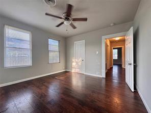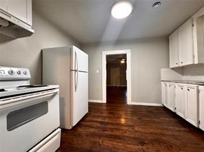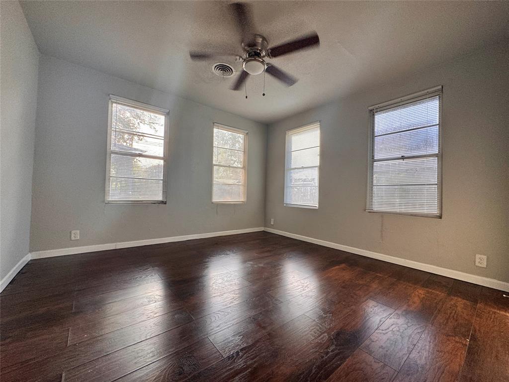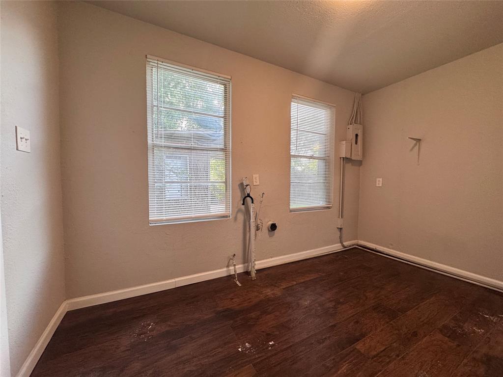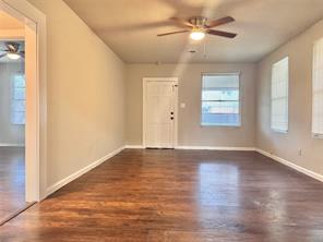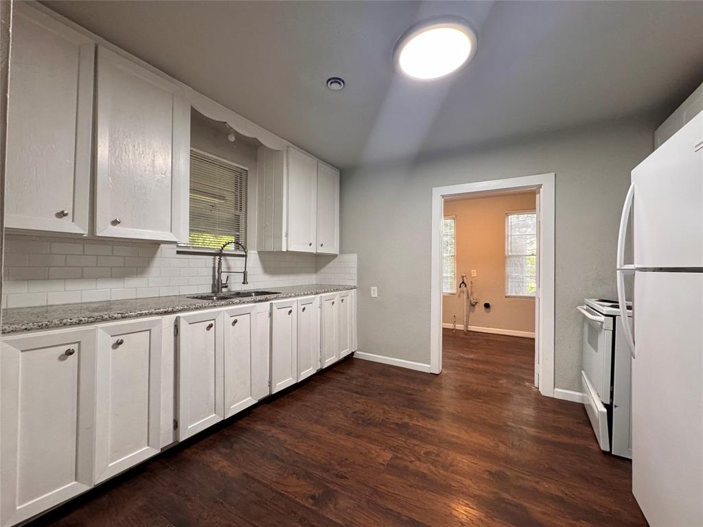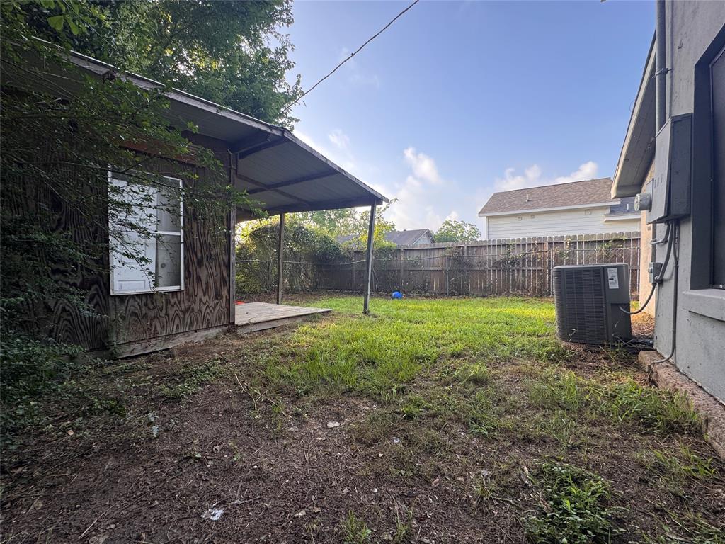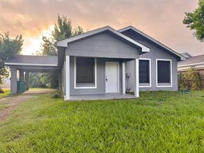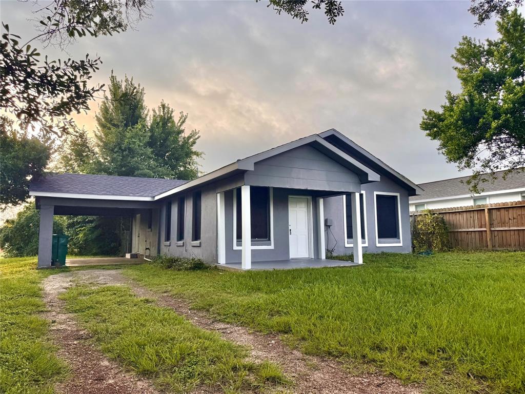 READY FOR IMMEDIATE-IN! This charming 2-bedroom, 1 bath is situated on a spacious lot. The home has solid surface flooring throughout. The interior features grey-toned paint. Equipped with central AC and heating. The layout seamlessly connects the living and dining areas. The kitchen includes an electric stove and refrigerator, while adjacent laundry room offers additional storage space for a freezer. The property also features a fenced backyard, a functional storage shed, a-carport on side of the home, and a long driveway for additional parking. Do not miss the chance to make this move-in-ready gem your home!