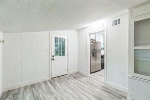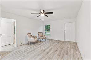 Welcome to this charming ranch-style gem, lovingly refreshed inside and out. The former garage has been transformed into a private ensuite bedroom, perfect for guests, in-laws, primary suite, or a home office. It boasts its own full bath and direct exterior entry. Every room features fresh, neutral paint tones ready for your personal touches. Entire home (excluding baths) outfitted with wood-look laminate floor—elegant and easy-care. Spacious, fenced backyard area ideal for kids, pets, garden space, or outdoor entertaining. Mature trees providing shade and serenity. Easy access to parks, shopping, and dining. Come and make it your own!