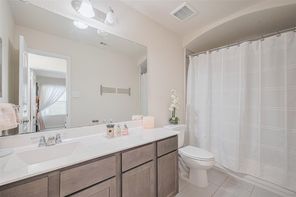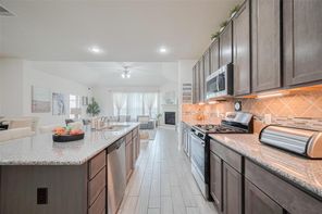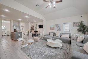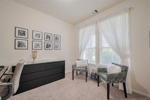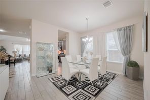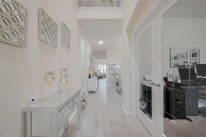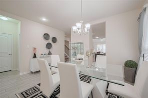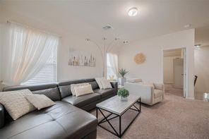 This amazing furnished 5-bedroom, 2.5-bath home offers the perfect blend of style, comfort and sophistication. You’re greeted by a private home office—perfect for working remotely—the formal dining room adds a touch of elegance for hosting dinners and celebrations. The kitchen features a large center island, under-cabinet lighting, abundant cabinetry, generous counter space and breakfast area-ideal for both everyday meals and memorable gatherings. The family room is filled with natural light and features a beautifully appointed fireplace that enhances its warm and welcoming atmosphere. The primary suite offers a serene retreat with a double vanity, a soaking tub, separate shower, and walk-in closet. The elegant wrought iron staircase leads to the spacious game room and four well-sized secondary bedrooms—offering comfort and flexibility. Enjoy the charming patio for those desired quiet moments. Minutes from I-10, Texas Heritage Pkwy and FM 1093.