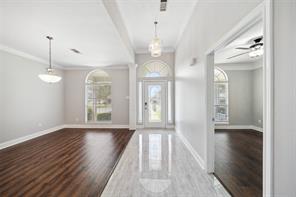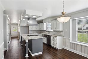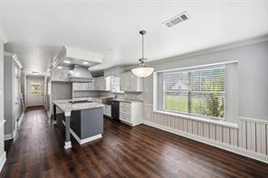 Beautifully updated home located in Seven Coves on Lake Conroe. One and a half story home with great curb appeal is located on a low traffic a cul-de-sac, and offers plenty of off street parking. Large covered back patio connects the home to the oversize 2 car garage; garage also has a full bath with shower, & plenty of extra workspace. Inside has beautiful wood floors through the main area & formal dining areaa, which open up to the spacious living area w/electric fireplace. Kitchen has a granite center island offering lots of extra counter space, plus stainless appliances, white cabinets, farmhouse sink & 2 pantries for extra storage. There is also a guest bathroom as you exit the backdoor. Large first floor master bedroom, main bath has two sinks, soaking tub, large walk-in shower & 2 closets. There are 2 additional bedrooms & a full bath on the main level. Upstairs is a flex space w/separate closet. New roof, generator, flooring & water heaters. community pool, boat launch..