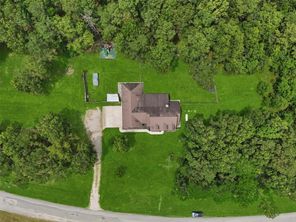 Your Own Private Slice of Heaven—Right Here in Texas, on 4.02 Acres! Tucked away on a scenic corner lot, this custom brick beauty offers space, privacy, and timeless charm—plus an extra lot behind with no backyard neighbors! Inside you'll find a cozy stone fireplace, hardwood floors, a chef-inspired kitchen with granite counters, gas range, and pull-out cabinetry. The owner's suite is a true retreat, and the flexible layout includes a formal dining, breakfast nook, and upstairs game/media room, full bath, and office or 5th bedroom. Brick and stone wrap most of the home with a full 360° walkway. Gorgeous 4 acres with natural wildlife throughout the neighborhood, deer, fox and birds. Located in a quiet country neighborhood with a park and fishing pond, horse trails, yet minutes to Houston, Baytown, Humble, and Hwy 99. Country serenity with city convenience! Low taxes. 4–5 Bedrooms | 3 Full Baths | 4.02 Acres