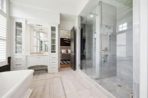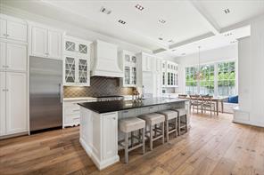 Welcome to 5420 Maple Street! A stunning, transitional 5 bedroom, 4.5-bathroom home with 5,260 sq ft of beautifully designed living space, built by renowned builder Lovett Homes. Located on a quiet, tree lined street in Bellaire, this home offers thoughtful design and exceptional quality throughout. The bright filled open-concept layout features spacious living and dining areas, a gourmet kitchen with high-end appliances, custom cabinetry, cleverly hidden desk and nice sized mudroom area and storage room. Upstairs, the expansive primary suite is a true retreat with a spa-like bath and an oversized walk-in closet complete with built-ins. Home is equipped with an Elevator and filled with custom details, this home also boasts a private backyard, ideal for relaxing or entertaining. Don't forget to check out the 3 car garage and driveway gate tucked away in the back of the home! Zoned to Bellaire High School and just minutes from parks, restaurants, the Texas Medical Center and Downtown.