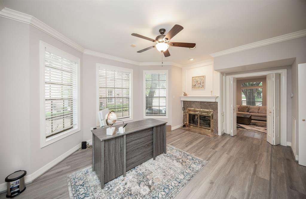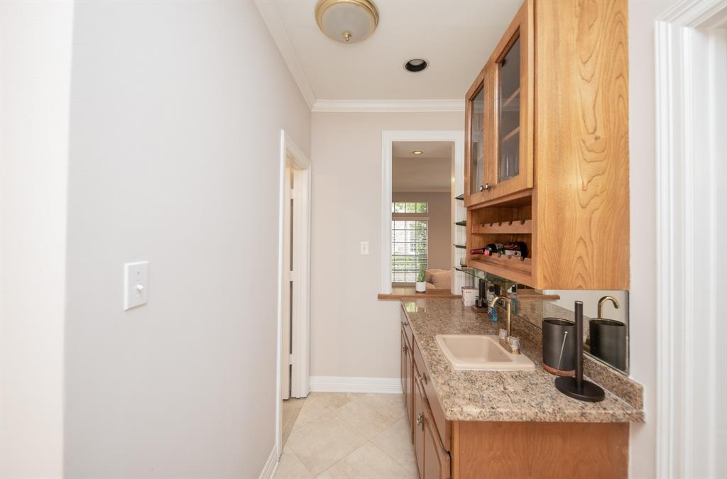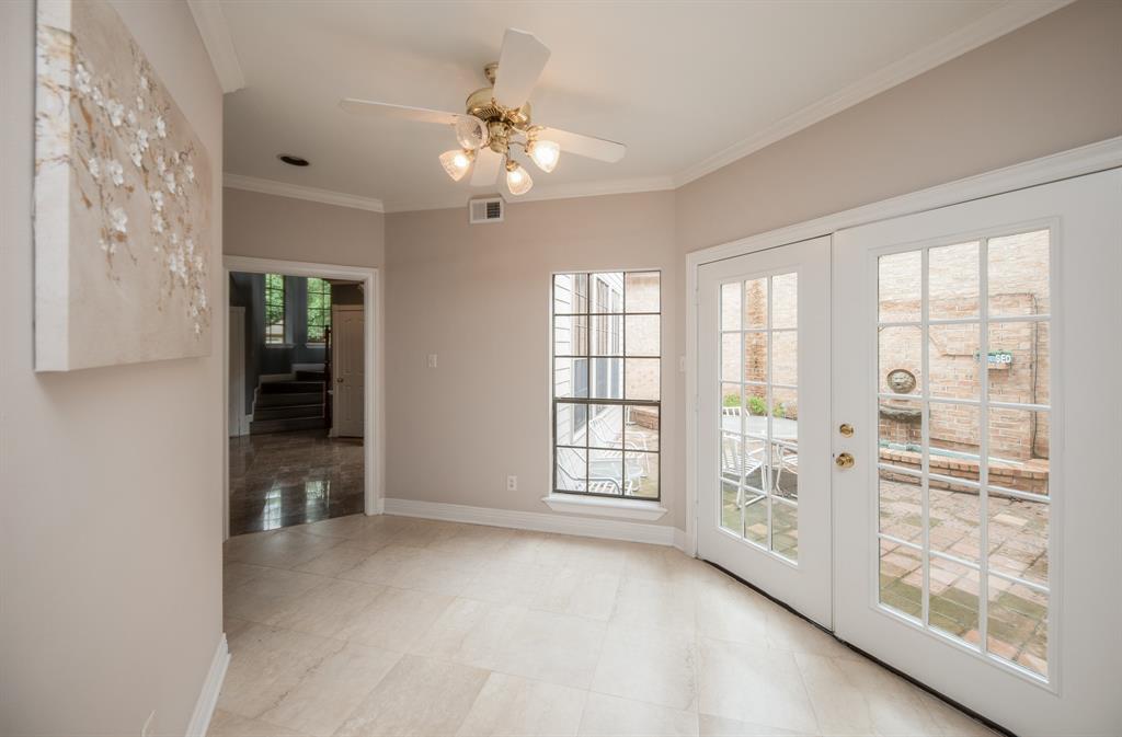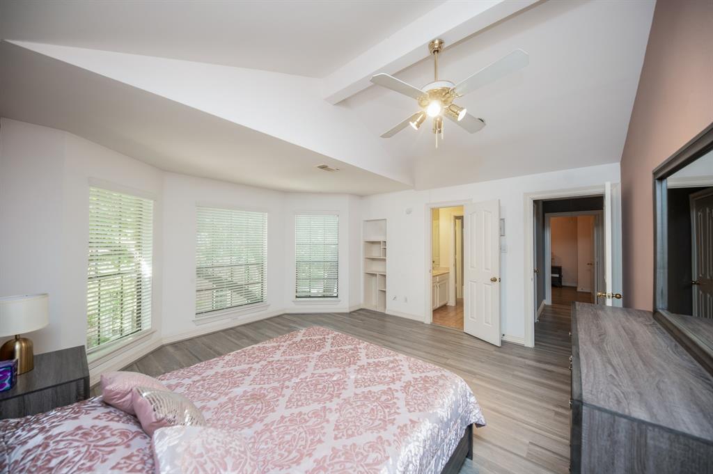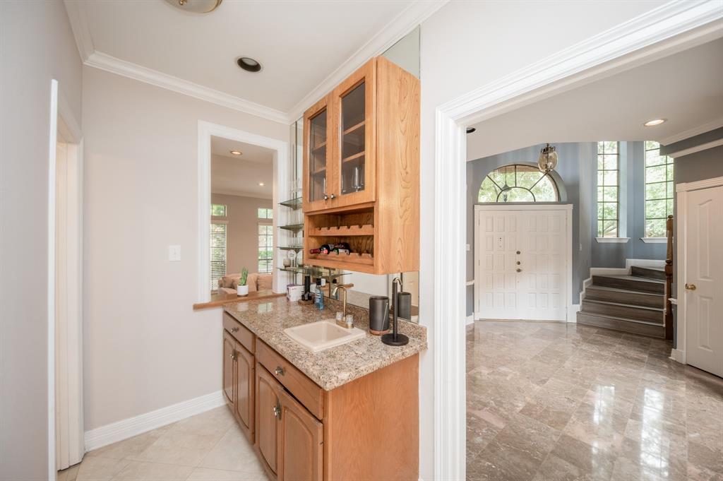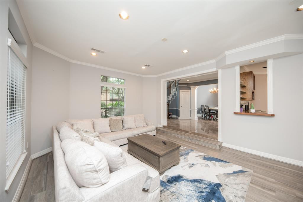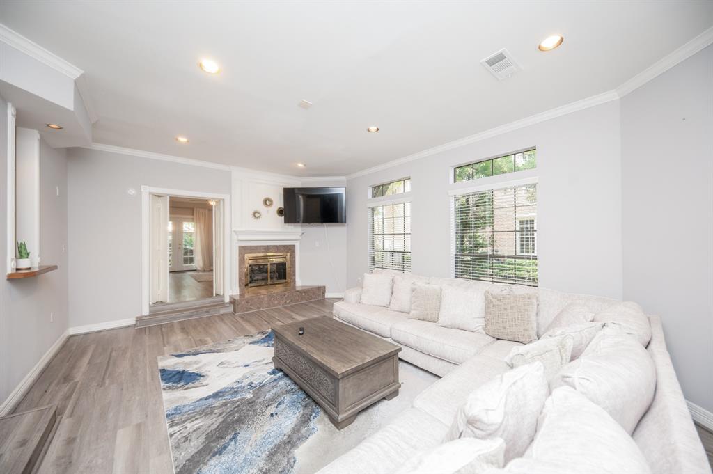 Terrific single-family home nestled in the back of a quiet gated community. This home offers wonderful entertaining space, a large patio and balcony. Enter this home through the grand entry and notice the large living room and den with hardwood floors. There is a fantastic wet bar opening to the living room and a fireplace in the den. All rooms have a great amount of natural light and windows. The island kitchen has granite counters, a pantry, a lot of storage and a desk. The kitchen flows into a breakfast area that overlooks the back patio. The two-story dining room has a wall of windows and space for a large dining table. There is a full bath with a shower downstairs and can be useful if the den is converted to a bedroom. The 2nd floor master has a spacious bath, room for a sitting area and opens to a balcony. There are two more nicely sized bedrooms upstairs that share a Jack and Jill bath. This home is in a fantastic tucked-away community convenient to shopping, dining and more.
