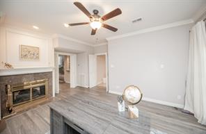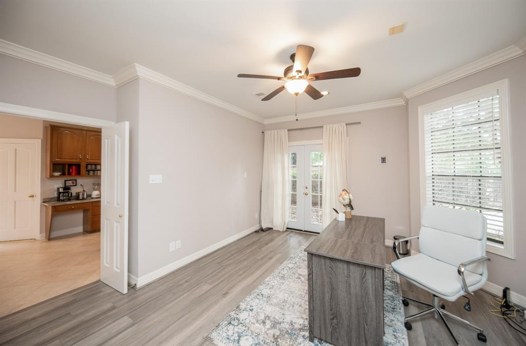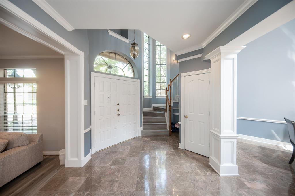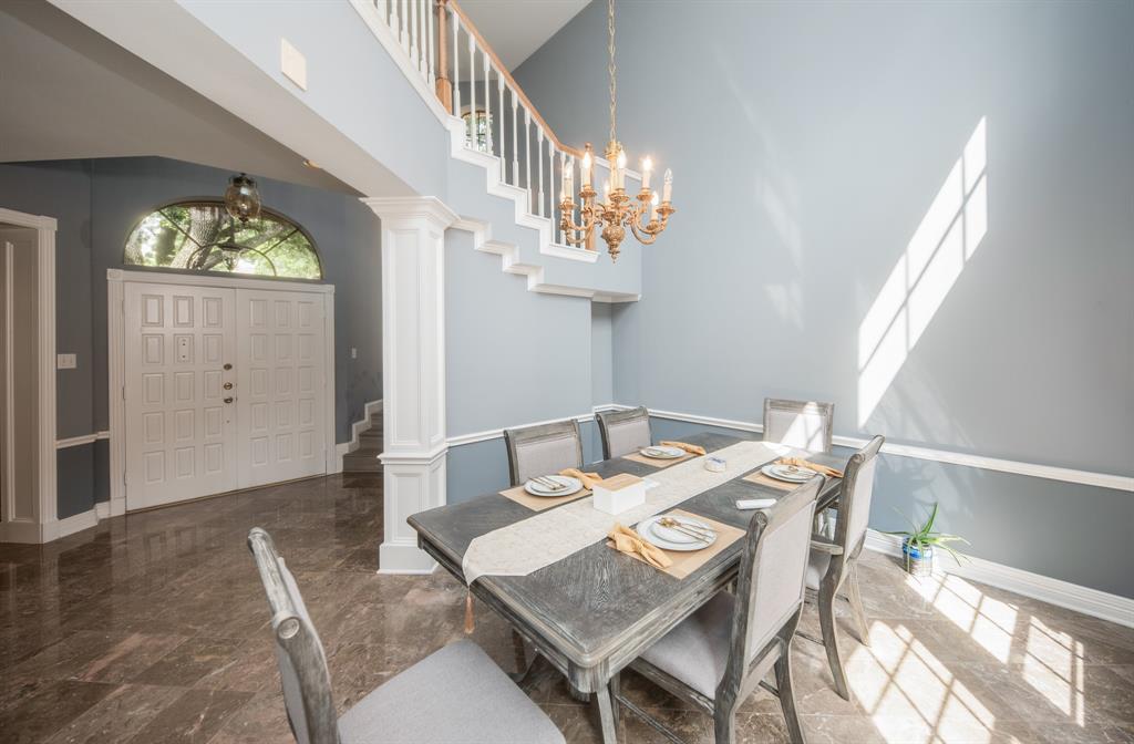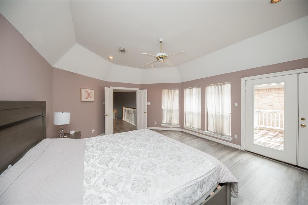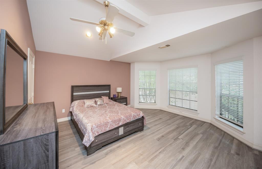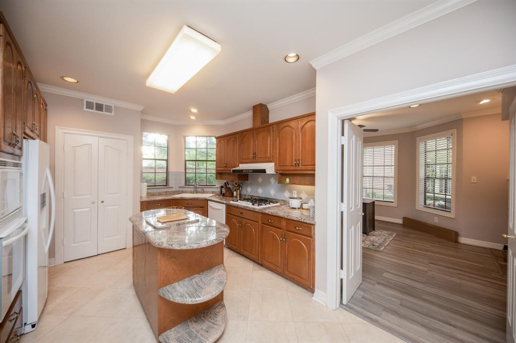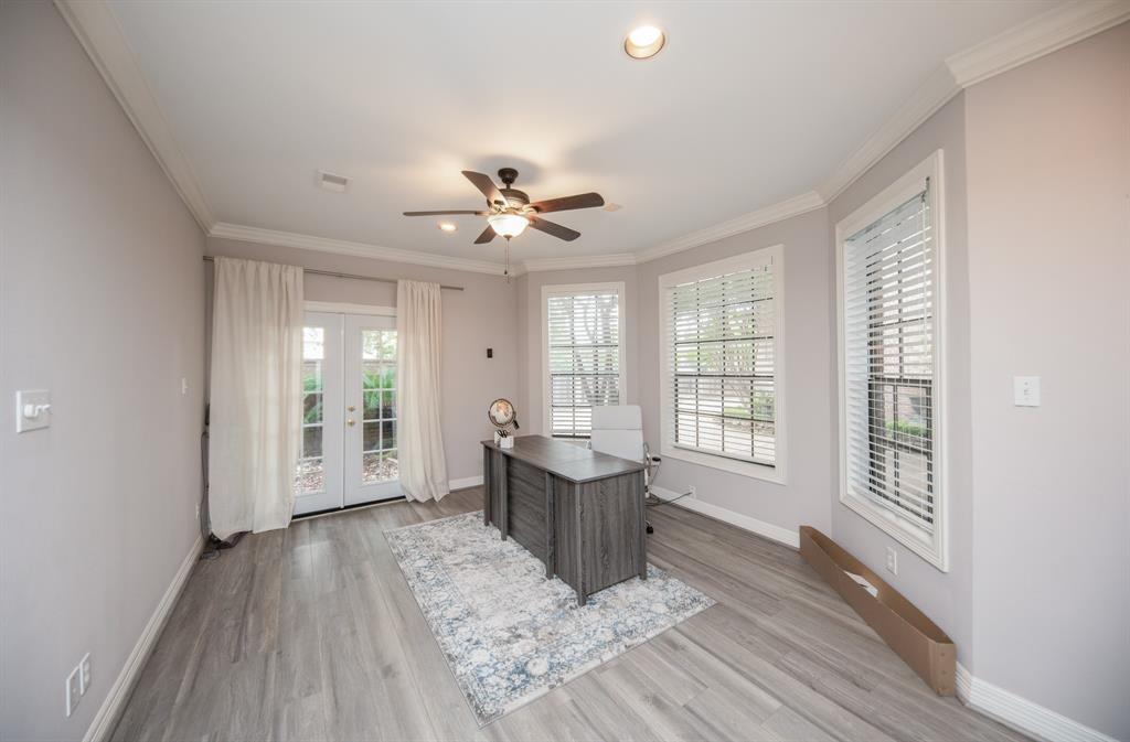 Terrific single-family home nestled in the back of a quiet gated community. This home offers wonderful entertaining space, a large patio and balcony. Enter this home through the grand entry and notice the large living room and den with hardwood floors. There is a fantastic wet bar opening to the living room and a fireplace in the den. All rooms have a great amount of natural light and windows. The island kitchen has granite counters, a pantry, a lot of storage and a desk. The kitchen flows into a breakfast area that overlooks the back patio. The two-story dining room has a wall of windows and space for a large dining table. There is a full bath with a shower downstairs and can be useful if the den is converted to a bedroom. The 2nd floor master has a spacious bath, room for a sitting area and opens to a balcony. There are two more nicely sized bedrooms upstairs that share a Jack and Jill bath. This home is in a fantastic tucked-away community convenient to shopping, dining and more.