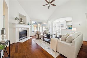 Discover this stunning multi-tonal brick home, featuring a distinctive façade that sets a welcoming tone throughout. The Cottage-Style architecture is enhanced by elegant arched and semi-arched windows. The property offers a lush backyard oasis with a pool and spa, backing onto a serene greenbelt for added privacy. Upon entering, the foyer leads you to an expansive living area with large windows overlooking the pool. Notable features include double-pane windows on the first floor, pristine Cherry wood floors, high ceilings in the living room, roof installed in 2020, and built-in office cabinets. Nestled within a gated community designed around a picturesque lake, residents enjoy access to cycling, jogging, and walking trails. The entire home has been freshly painted and is conveniently located just minutes from the energy corridor, shopping centers, restaurants, and major highways such as I-10, Hwy 8, and 290. Embrace the perfect setting for summer fun by the pool!