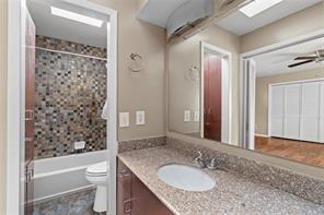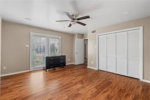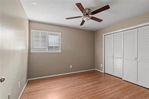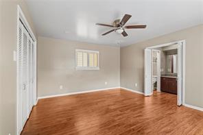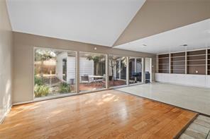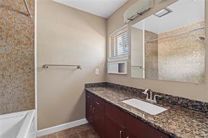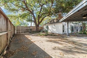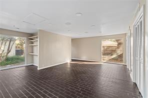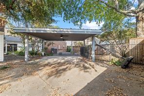 Looking for a home in the Galleria area's Briarcroft neighborhood? Step into this Mid-Century Modern gem, where floor-to-ceiling glass windows offer stunning garden views from the main living spaces. The open and flexible floor plan brightens the living and dining areas, as well as the bedrooms and office spaces, all featuring built-in shelving, cabinets, and desks. The sleek kitchen boasts a walk-in pantry, stainless steel countertops, appliances, and a spacious sink, complemented by modern cabinetry and room for an island. The original garage has been transformed into a versatile space with a full bathroom—ideal for a game room, workout area, office, and more, complete with ample storage closets. The updated carport, perfect for outdoor entertaining, features two ceiling fans and a separate fenced area for pets. An automatic driveway gate enhances privacy in the backyard.