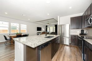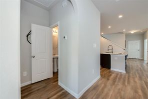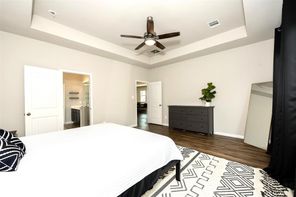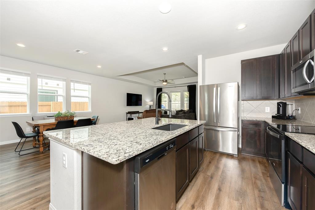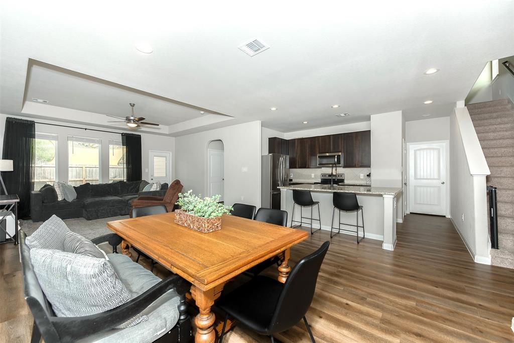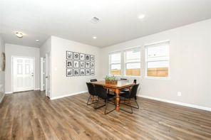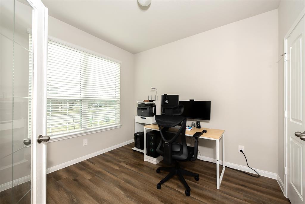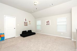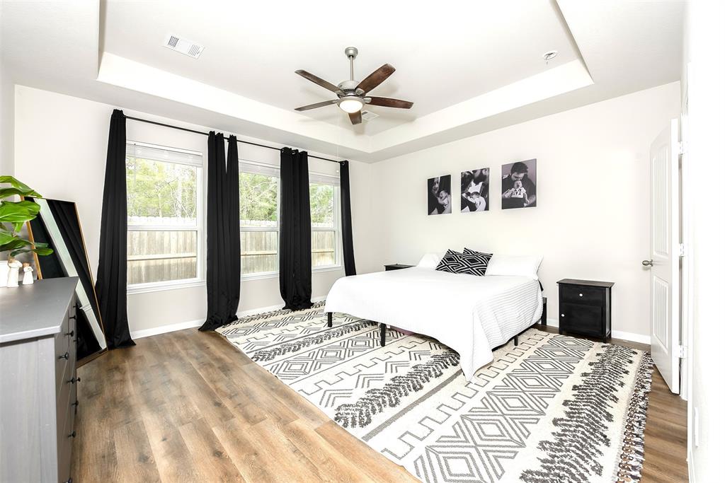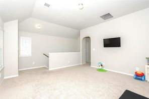 Charming Ridgeview Floorplan in Alamosa Springs with a BONUS ROOM upstairs on a premium lot with no back neighbors! Located just minutes away from the Texas A&M Health Science Center and a couple blocks from the EXPO Center. The oversized primary bedroom is tucked privately in the back of the home downstairs. Relax in style with an ensuite bath and a spacious walk-in closet. The first floor also boasts high ceilings, a wide open floor plan, and a half bath, all completed with wood vinyl plank flooring. Also downstairs is the office or 4th bedroom. Upstairs, you walk into the versatile room that can serve as a game room or 2nd living, along with a full bath and the other 2 bedrooms. Complete seamless gutters, 5 zone sprinkler system, small fenced yard, back woods, & pest control on quarterly service has provided worry-free living! Zoned HVAC has a fresh air filter with returns in each room! This home will be ready for its new owners after the tenants vacate at the end of June.