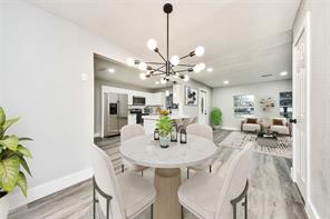 Welcome to 5817 Beechnut St., where modern meets functional living! This updated 3-bedroom, 2-bathroom home offers a semi-open concept, designed to maximize every square foot. As you step inside, you’ll be greeted by beautiful woodgrain floors leading to the heart of the home: the kitchen. Featuring a thick striking peninsula, this space seamlessly connects the kitchen, dining, and living areas, perfect for hosting family and friends. The primary bedroom is a true retreat, boasting a built-in desk ideal for working from home, a spacious closet for your wardrobe, and a private ensuite bathroom. The two additional bedrooms provide generous space, ensuring comfort for everyone. Situated on a large lot, the property offers a sprawling backyard—perfect for outdoor gatherings—and includes a storage shed for your convenience. Cozy yet versatile, this home is ready to welcome you, and perfect for a starter home. Don’t miss the chance to make it yours!