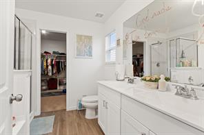 Hurry to see the pristine home built in October 2022! Like new but better -It is loaded with upgrades that are not standard in new homes. Backyard additions include a generous covered patio and putt-putt area plus a basketball goal with artificial turf for low maintenance. This open floorpan boasts 4 bedrooms and 3 full baths. This well-planned layout includes a downstairs office with a glass door and a guest /flex room and an upstairs game room. Kitchen has granite countertops new backsplash 2024, and an island for entertaining or everyday life. Master retreat has a soaking tub, shower and generous closet. Home includes Tesla home generator, epoxy garage floors and solar panels for energy efficiency. Also included are decorative security doors, a home water softener, a concrete walkway to side and backyard. This location is perfect for easy access to Hardy Toll Road and Bush Airport minutes to Old Town Spring and more! Don't miss out ! See sellers list in attachments !
