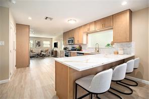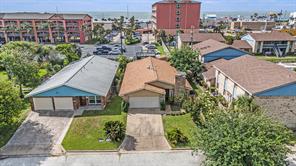 Don’t miss this incredible opportunity to own a beautifully updated home on a cul-de-sac, just 2 blocks from the beach on scenic Galveston Island! This spacious 3-bedroom, 2-bath gem offers comfort, style, and coastal charm. Step into the amazing chef’s dream kitchen, featuring a full-size side-by-side refrigerator and freezer, gorgeous quartz countertops, custom cabinetry, and a cozy breakfast room, perfect for morning coffee or casual dining. The living room stuns with vaulted ceilings, exposed beams, and a warm fireplace, creating an inviting space for entertaining or relaxing. The spacious master ensuite offers a private retreat along with a gorgeous ensuite bath. Don’t forget to check out the observation deck out back which offers views of the Gulf. This home is truly lovely and close to many of Galveston's restaurants, shopping and attractions. Other benefits include a new roof and water heater (November), 2 ½ year old hvac system, and the large storage makes a great workshop.