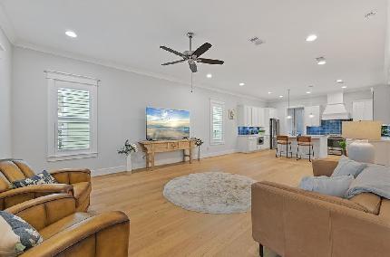 4-Bedrooms/studio & 2 1/2 Baths. *LAKE FRONT* Colonial Brick Entry & waterfront patio/porch with beautiful landscape which enhances your water views. Open concept Living room with 14' ceiling. Updated kitchen New Refrigerator, LG appliances, gas range convection oven, quartzite counters, tile backsplash. New Washer/Dryer included. Customized with hardwood floors, breakfast bar, high ceilings & gas log fireplace with Smart Star. New HVAC air-handlers for both AC units. Enclosed spacious patio connecting the two-car garage with ally entrance. Enjoy the upscale living & amenities at EVIA. 2-blocks from restaurant, coffee shop, wine bar, boutique, beauty bar Golf Course pool, parks & gazebos. X Flood Zone. Available & Ready to move in!