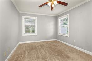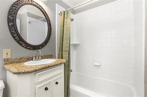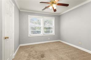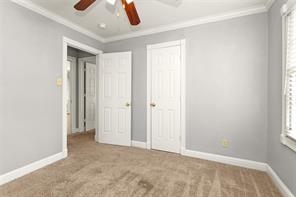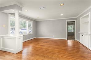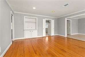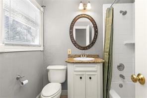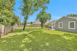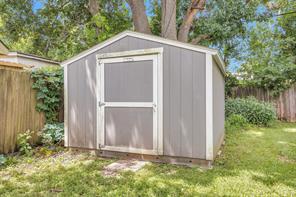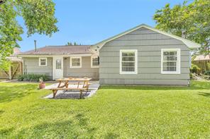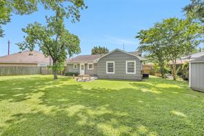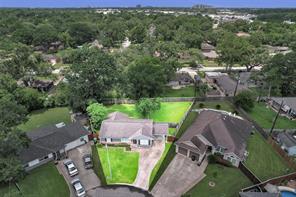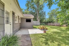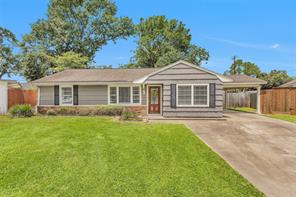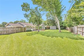 Tucked away at the end of a quiet cul-de-sac in Braeburn Terrace, this updated 3-bedroom, 1.5-bath, 1-story home sits on an oversized lot with a massive fully fenced backyard—perfect for outdoor entertaining, pets or future expansion. The bright interior features hardwood and tile flooring, crown molding, beautiful built-ins and large wood-wrapped windows with 2" faux wood blinds that fill the home with natural light. The kitchen boasts cabinets galore, stunning granite counters, gas-stove/oven and the refrigerator is included! All 3 bedrooms have ceiling fans and generous size closets. Outside, enjoy the patio space, mature shade trees and included Tuff shed for added storage. Conveniently located near Meyerland Plaza, the Medical Center, and The Galleria with quick access to shopping, dining, and major thoroughfares.