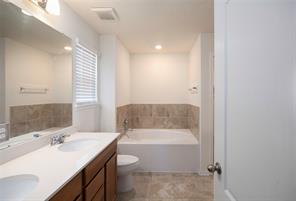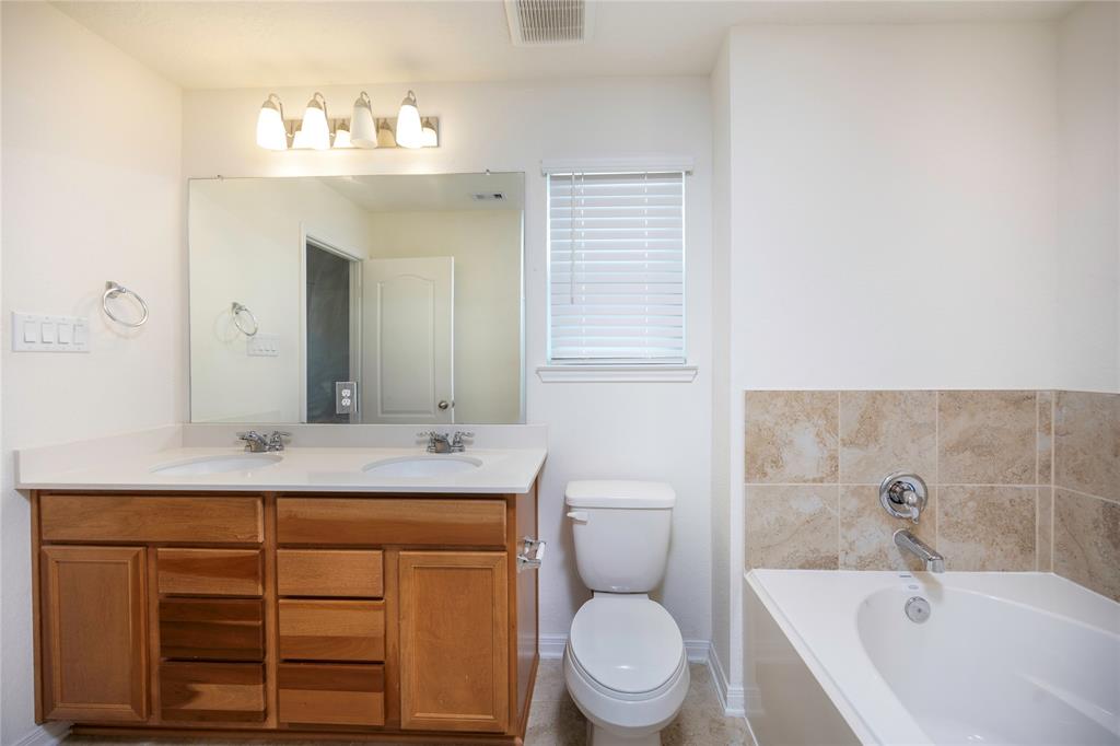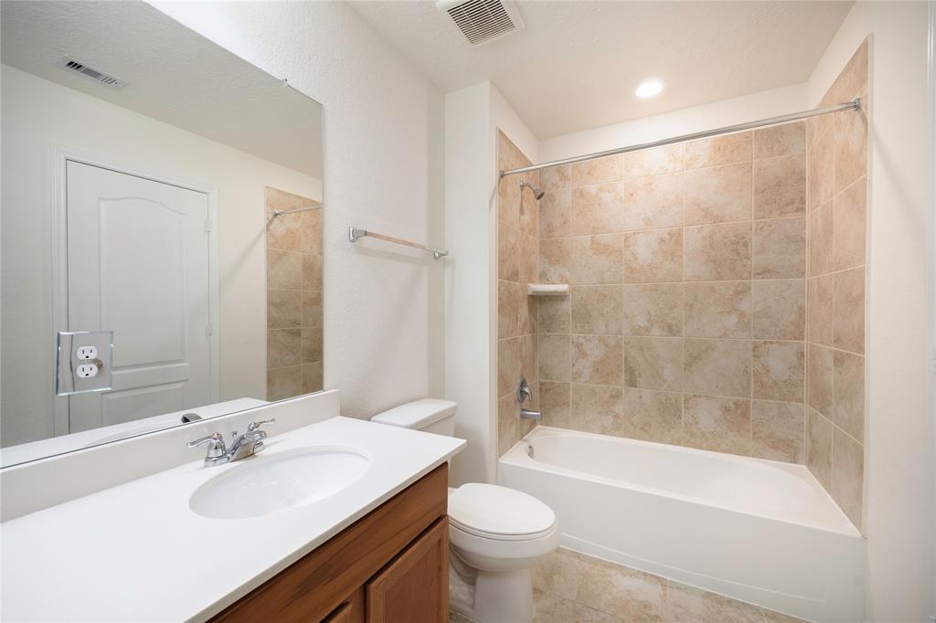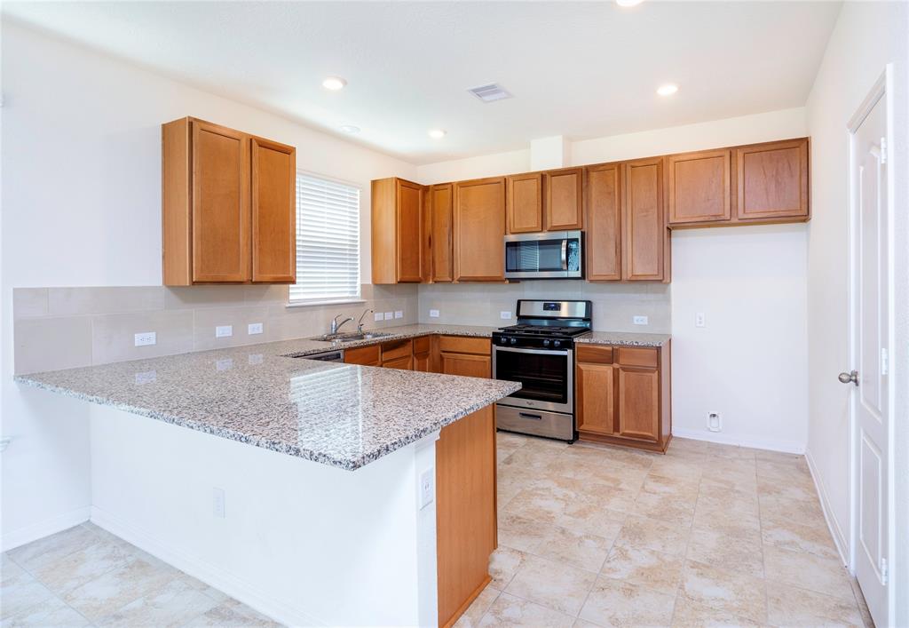 Welcome to this stunning two-story home, offering space, comfort, and functionality throughout. Step inside to a warm and inviting entry that flows into an open kitchen featuring ample counter space, plenty of cabinetry, a stove, microwave, dishwasher, and a bright, spacious breakfast nook perfect for casual dining. With five generously sized bedrooms, this home provides flexibility for any lifestyle. The primary suite, located on the first floor, includes a soaking tub, walk-in shower, and a large walk-in closet. A secondary bedroom is also conveniently located downstairs, while the remaining three bedrooms are upstairs. Enjoy a private, fenced backyard ideal for outdoor activities, a dedicated laundry room, and a two-car garage.Schedule a showing today!
