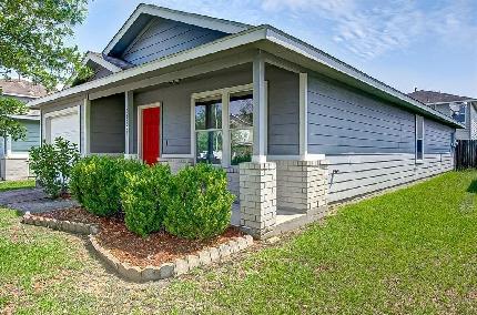 This beautifully remodeled, fully fenced home is ideally located in the heart of downtown Humble, TX, just one block from Main Street. It offers 3 spacious bedrooms, 2.5 bathrooms, and a versatile flex room, along with a welcoming front porch and balcony that enhance its curb appeal. Inside you'll find bamboo and tile flooring throughout the main living areas and plush carpeting in the bedrooms. The open-concept layout is filled with natural lighting and has 9/10-ft ceilings. The kitchen has granite countertops, stainless steel gas appliances, and there are energy-efficient window coverings throughout the home. A refrigerator and microwave are included with the lease. This property offers an exceptional location with parks, restaurants, and grocery stores within walking distance, and is just a 10-minute drive to George Bush Intercontinental Airport (IAH). Comparable to new construction in both design and condition, this home delivers modern comfort, functionality, and plenty of space.