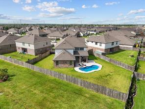WELCOME TO THIS STUNNING CHLOE FLOOR PLAN ON AN OVERSIZED LOT. FROM THE FRONT DOOR TO THE BACK DOOR, THIS HOME IS FULL OF UPGRADES. FORMAL LIVING/OFFICE OPTION W/FRENCH DOORS, A GRAND LIVING SPACE WITH HIGH CEILINGS AND SPACIOUS VIEWS OF THE ENTIRE HOME. KITCHEN W OVERSIZED ISLAND LOOKING AMONG THE LIVING AREA AND LARGE WINDOWS VIEWING THE CUSTOM FIBERGLASS POOL. PRIMARY LOCATED ON FIRST FLOOR AND ALL OTHER BEDROOMS 2ND FLOOR, GAMEROOM/LIVING AREA, WET BAR AND THEATER FLEX SPACE THAT COULD BE OPTIONAL 5TH BEDROOM. THIS IMMACULATE HOME IS FULL OF UPGRADES THROUGHOUT: SMART HOME, UPGRADED FIXTURES, FANS AND LIGHTING. OUTDOOR UPGRADES ARE ENDLESS: ENJOY ENTERTAINING FROM YOUR CHILLED/HEATED POOL, OUTDOOR GAS LINE, ENGINEERED DRAINAGE, GUTTERS, SPRINKLER SYSTEM, AND CUSTOM OUTDOOR LIGHTS THAT HIGHLIGHT THIS HOMES BEAUTY.