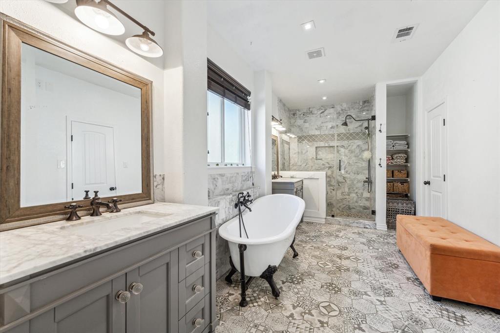 Recently renovated and plenty of extras! Exceptional floor plan and relaxing backyard with pergola. Open floor concept with 4 bedrooms and a study! Custom kitchen with soft close shaker cabinets, large steel farm house sink, stainless steel island, and plenty of counter space overlooks the oversized family room and fireplace. Stay cozy in the large study with the opposite side of the fireplace. Light-filled primary suite with two primary closets, and bath feature large walk-in shower and claw foot tub. Beautiful marble in both bathrooms! Upgrades include HVAC (2022), spray foam insulation, outdoor and pathway lighting, wifi front/back/side sprinklers, plenty of storage in home and garage. Fantastic location in desirable Cinco Ranch - centrally located w/quick access to Westpark Tollway, Hwy 99, and I-10. Minutes to Downtown/Medical Center, Sugar Land & the Energy Corridor.