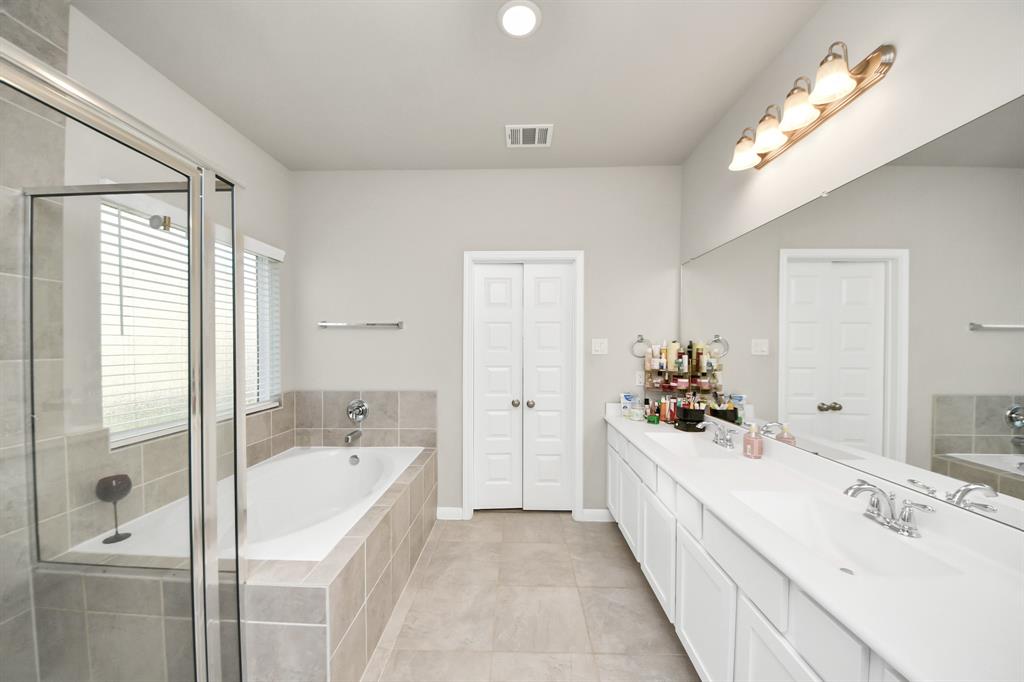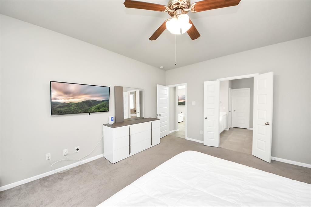 Step into this spacious two-story K. Hovnanian home with 4 bedrooms, 2.5 baths, and a 2-car garage. The kitchen has beautiful maple cabinets, granite countertops, a low bar top, and a center island, great for cooking and gathering. The 1st floor primary bedroom includes a huge walk-in closet, double sinks, and a separate tub and shower for relaxing. All the secondary bedrooms are upstairs, giving everyone their own space. You'll find tile flooring throughout the first-floor living areas, and a covered patio out back that's perfect for entertaining. Plus, you'll love having easy access to the community's Recreation Center, lakes, and parks.