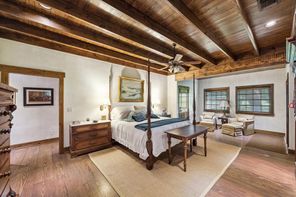 Your private oasis awaits at this premier country retreat. Discover an unparalleled blend of rustic charm and tranquility on this 188.76-acre property, featuring majestic legacy live oak trees. Designed for discerning buyers, this retreat offers a high-end country living experience. The custom-built main house boasts unique accents from a historic barn that was lovingly restored and incorporated into the design. It includes four bedrooms and five baths, each meticulously designed for comfort and refinement. The primary suite serves as a sanctuary with two spa-like bathrooms and stunning views. A fire pit allows for cozy evenings under the stars. The well-appointed kitchen and expansive patio are ideal for hosting unforgettable events. Excellent opportunity for equestrians with a barn equipped for training, an arena and miles of riding trails. Enjoy privacy and convenience with a private airstrip. This property promises an exceptional lifestyle, perfect for creating cherished memories.