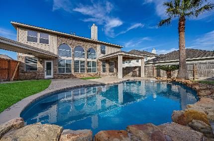 Stunning single-story U-shaped home with great curb appeal, welcoming front porch, coffered-ceiling entry, and all-new energy-efficient windows and doors. Bright open-concept living flows through the center of the U; flexible floorplan offers potential primary suites on each side, plus a front office and a large bedroom with its own bath. The neutral tones make the home so warm and inviting. The private pool sits at the heart of the layout, complemented by a new pool pump, new roof, 2-car garage, circle driveway, mature trees, and a huge yard. Bonus: a large 1,800 SF detached apartment in the rear, so if your looking to house hack or have multi family, look no further; Easily accessible to the neighborhood Willow Creek Golf Club, and located in Northhampton which offers two neighborhood pools, tennis courts, fishing ponds, walking trails and fantastic community events — this property truly combines opportunity and beauty.