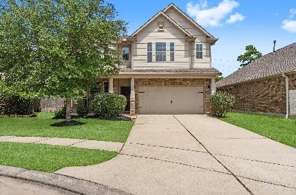 Nestled on a charming corner lot with mature trees, this home offers striking curb appeal. Natural light fills every room, creating a bright and inviting atmosphere. The formal dining room is perfect for entertaining. The kitchen features a central island, stainless steel appliances, ample counter and cabinet space, and a bright breakfast nook. The kitchen flows seamlessly into the living room, which boasts a cozy fireplace and large windows. A formal office provides an ideal workspace. The luxurious primary suite has plush carpeting, a tray ceiling, and a spa-like ensuite with a jetted tub and separate glass-enclosed shower. Secondary bedrooms are bright and airy, each with plush carpet. A spacious laundry room with extra storage completes this comfortable and stylish home. Step outside to a private backyard with a covered patio, perfect for relaxing or entertaining. Located within minutes to The Woodlands, Hwy 99, I-45, and all the great shopping and restaurants.