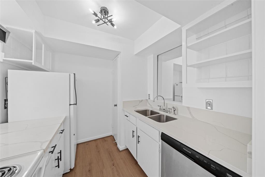 *ELECTRIC*, *BASIC CABLE*, *WATER AND TRASH* – *ALL UTILITIES* included in monthly rent!! This 2nd Floor Corner Unit offers new finishes and upgrades throughout! 2025 updates include New LVP flooring, New Interior Paint, New Light Fixtures and Ceiling Fan, 2024 Kitchen update included quartz counters, a New Range, New Dishwasher and a New Refrigerator in 2023! HVAC system was replaced in 2023 as well, everything has been updated!! Front door opens to reveal an open Living Room/Dining space that’s surrounded by upgraded double paned windows that let in lots of natural light. Breakfast Bar between Living and Kitchen areas allows for easy interaction between the spaces. Large bedroom offers a nook that’s ideal for a home office, walk-in closet/bath area features lots of storage cabinetry and upgraded tile surround in the shower. A short walk through the beautifully landscaped courtyard with fountain takes you to your covered parking space!