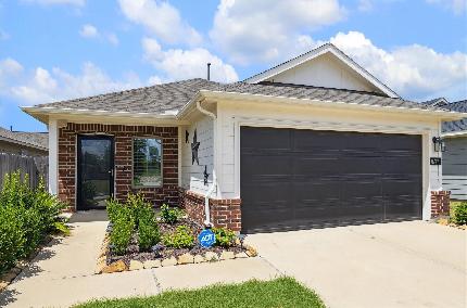 A modern, move-in ready home built in 2020 in the desirable Lantana community (also part of Elyson). This bright, single-story residence boasts 1,627 sq ft of living space with 3 bedrooms and 2 full baths. The open-concept floor plan centers around an inviting great room connected to a kitchen equipped with granite countertops and stainless steel appliances — perfect for cooking and entertaining. High ceilings, luxury vinyl plank flooring, and a charming stone-and-brick façade create a welcoming ambiance. Retreat to the private primary suite featuring a walk-in closet, dual vanities, a separate tub and shower. Outside you’ll find a fenced backyard with a covered patio/deck, ideal for outdoor enjoyment and weekend bbqs. Residents benefit from Lantana and Elyson's amenities - including a playground, splash pad, trails, pool and fitness center. Located in Cy-Fair ISD and offering easy access to the Grand Parkway, this home blends comfort, convenience, and community. Call now to schedule!