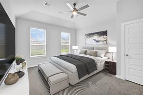 LONG LAKE NEW CONSTRUCTION - Welcome home to 642 Yard Master Trail located in the community of Huntington Place and zoned to Fort Bend ISD. This stunning 3-sided brick premium elevation is on a premium lot and features 4 bedrooms, 3 full baths, 1 half bath, and an attached 2-car garage. It also features under cabinet and pendant kitchen lighting, kitchen island with single bowl stainless steel sink and added breakfast bar, French door in the study, ceiling fan in the primary bedroom, metal balusters, 2" faux wood blinds, extra vanity sink in primary and secondary bathrooms, 42" tub with separate shower in primary bathroom, black exterior coach lights, front gutters, sprinkler system, covered rear patio, WiFi enabled garage door opener, and much more! You don't want to miss all this gorgeous home has to offer! Call and schedule your showing today!