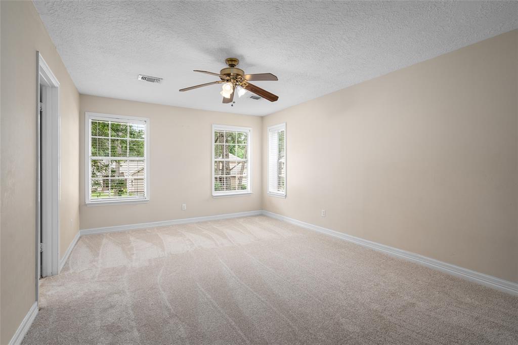 Welcoming three bedroom/2.5 bath home in The Woodlands Panther Creek 15 neighborhood. Separate Living Room with fireplace and wet bar area. Dining Room overlooks spacious back yard. Upstairs has study/flex room. Primary Bedroom and private bath. Two secondary bedrooms with hall bath. New carpet upstairs. Roof replaced 2023. Kitchen cabinets freshly painted with new hardware. Nice eat-in area too. Great space which you will enjoy.