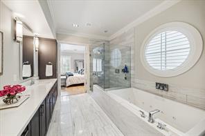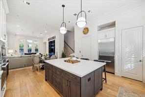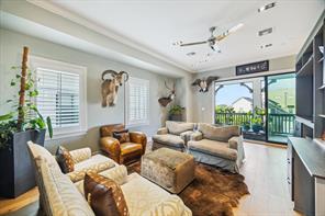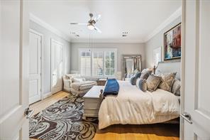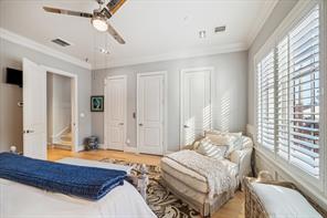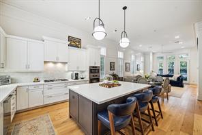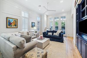 Walking distance to Memorial Park and nestled in the highly desirable Camp Logan neighborhood, this stunning one-owner townhome shows like new and features luxury finishes and design. Generator (2024) and elevator. Beautiful wide-plank wood floors are found throughout, along with soaring 12' ceilings on the main floor and abundant natural light. The home features multiple low-maintenance outdoor spaces, including a back courtyard and two inviting balconies (one fully screened). Architectural touches like crown molding, custom wainscoting, and built-in cabinetry add sophistication and warmth. The luxurious primary suite features a white marble bath along with a boutique-style walk-in closet, thoughtfully designed and upgraded by California Closets. Additional highlights include generously-sized secondary bedrooms and a fourth-floor game room wired for surround sound with a full wet bar. Easy access to I-10 makes transit to Downtown, the Galleria, Memorial City and more a breeze!