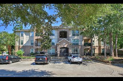Welcome to this stunning 2 bedroom 2 bath condo located in the desirable Sterling Green community. This updated home showcases numerous recent updates including upscale laminate flooring throughout the unit - no carpet here! Recent paint and elegant plantation shutters add a touch of luxury to every room. The roof was replaced by the HOA earlier this year, offering added peace of mind. All appliances are included, making this home move-in ready. Ideally situated at the rear of the building, this unit offers tranquil views of the wooded walking trail from your private balcony. A perfect spot for morning coffee or evening relaxation. Sterling Green Condominiums is located walking distance to Perry’s Steakhouse and Brother’s Pizza, it is also just a short drive from HEB, Cynthia Woods Mitchell Pavilion, The Woodlands Mall, Market Street, and much more! This complex features elevators for added convenience and each unit comes with a 1 car detached garage space. Book your showing today!