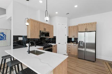 Located in a residential community on a larger corner lot, this two-story home offers expanded yard space and natural light from multiple exposures. The first floor features an open living, dining, and kitchen area with wide windows, quartz countertops, stainless steel appliances, soft-close drawers, ample cabinetry, and an island, plus a half bath. Upstairs includes well-sized bedrooms, full bathrooms including a primary en-suite, and generous closets. A game room with an integrated media screen provides flexible space, with extra windows benefiting from the corner positioning. An attached garage, private driveway, and fenced outdoor area with built-in planters and a patio offer usable exterior space. A reverse osmosis faucet in the kitchen, outdoor lighting, outdoor shed, and 11.5 kW EV charger in the garage are included. Positioned along the community’s single internal street with convenient access to I-45, 610, and 290. A beautiful home designed for modern living.