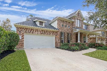 Fabulous 5 bedroom home with True 3 car garage on a spacious lot with pool/spa! Outdoor entertainment at its finest with fantastic covered back patio with cozy fireplace and outdoor pool bathroom. Additional outdoor living with a welcoming front porch & private courtyard patio. This stunning home features two bedrooms down, an open kitchen, family room with soaring ceilings & fireplace, spacious breakfast room, formal dining and living room. Great floorplan for easy entertaining. The primary retreat offers a quiet get away along with a spa like master bath with granite counter tops, jetted tub and separate shower. Guest room with full bath downstairs. Double staircases lead you upstairs to 3 large bedrooms, game room and media room. Screen, projector & 2 media chairs included. Fabulous storage throughout with 2 Texas Basements. Walk or bike to Deretchin Elementary.