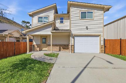 Located in a gated community, this three-bedroom, two-and-a-half-bath home offers a spacious and functional layout. The first floor features an open living area that flows into a stylish kitchen with a large island, quartz countertops, shaker-style cabinetry, and a farmhouse sink ideal for everyday living and entertaining. Upstairs, the primary suite provides a comfortable retreat with a walk-in closet and full bath featuring a soaking tub and separate frameless glass shower with bench seating. Two additional secondary bedrooms, a versatile game room, and a conveniently located upstairs utility room make daily living easy. Conveniently located with quick access to Downtown Houston and just minutes from shopping and dining at The Galleria and CityCentre.