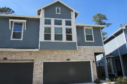 Beautiful two-story home in Grand Central Park with an inviting front porch & entry with a window seat. Private backyard. Open-concept floor plan with kitchen, dining, and family room flowing seamlessly together. Large windows overlook a wooded greenbelt, offering abundant natural light and added privacy. Kitchen features ample cabinet and counter space with under-cabinet lighting. Main level includes a half bath and mudroom. Upstairs offers three spacious bedrooms with great closet space, two full baths, and a utility room plus a large storage closet. Third bedroom with French doors is ideal for a home office or game room. Upstairs nook provides additional workspace or reading area. Lovely backyard with wooded greenbelt behind, completes this home.