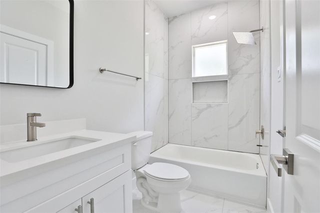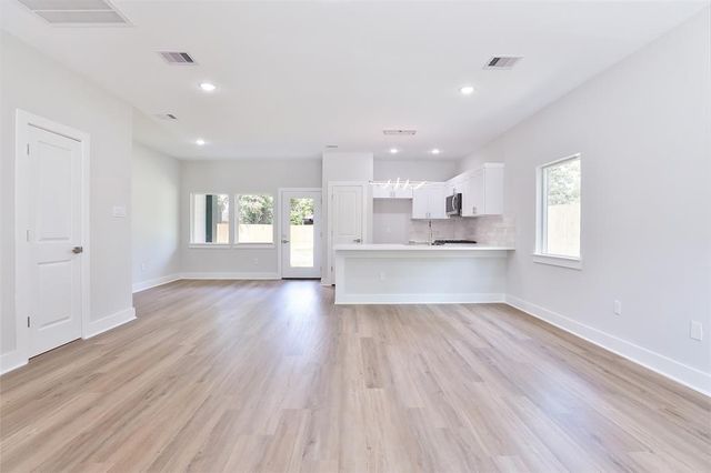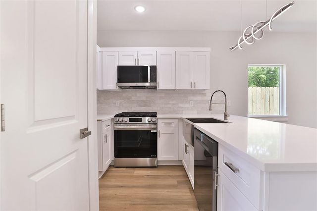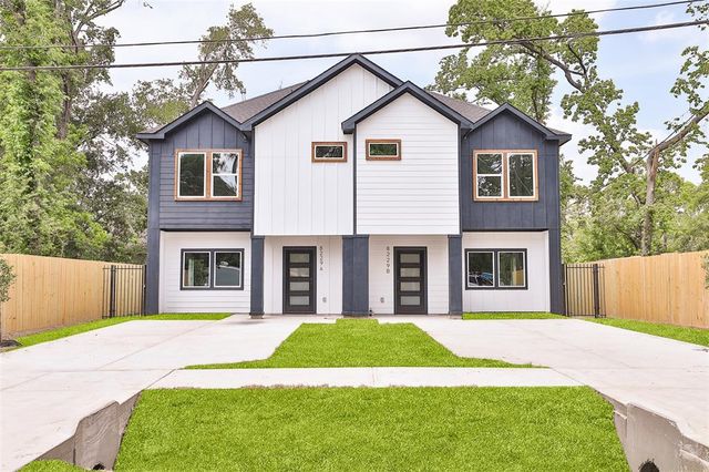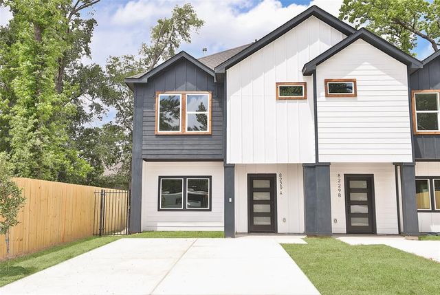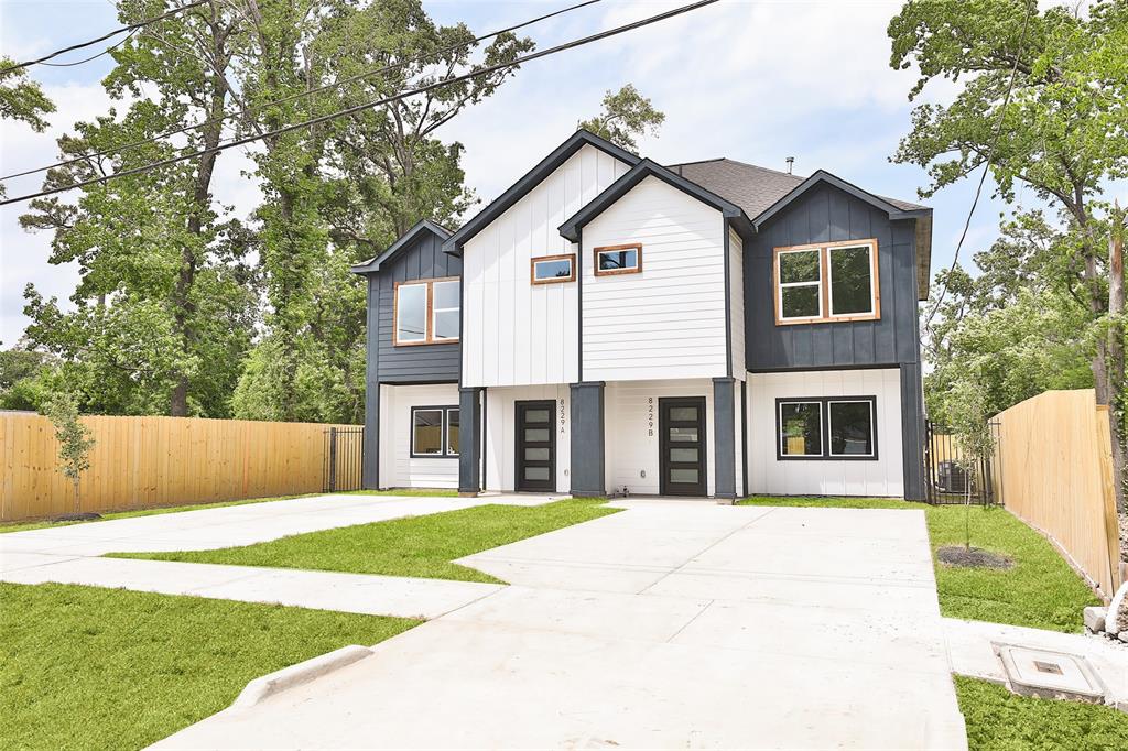Photos Shown are of 8229 Hamlet which is the exact same floorpan. Buyer can make the decision on exterior paint if they give offer prior to July 1st. Property should be available on July 31st. Each newly built unit is meticulously crafted to provide you with tranquility and privacy from neighboring residents. Each unit boasts 3 bedrooms, 2.5 baths, and yard. With elegant finishes throughout, this property is ideally situated near 69 and 610. Enjoy modern conveniences with an open floor plan and a spacious layout, featuring stainless steel appliances, quartz countertops, shaker cabinets and luxury vinyl plank flooring. The fully fenced yard is perfect for children and pets to roam freely. This is a fantastic investment opportunity—live in one side while renting out the other to help offset your mortgage costs.