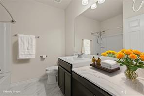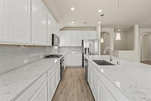 WELCOME HOME!! This METICULOUSLY MAINTAINED 4/2.5/2 is in the highly desired master-planned community of ELYSON!! LAKE and WALKING TRAILS within VIEW. Upon arrival you’re greeted by luscious LANDSCAPING, a GLASS FRONT Door! The STUDY/OFFICE/FLEX SPACE is just off the entrance, and The FAMILY ROOM has a MOSAIC FIREPLACE & WALL of WINDOWS! The GOURMET KITCHEN has an OVERSIZED ISLAND w/GRANITE countertops, Bar, DESK area, WALK-IN PANTRY & SS Appliances! You'll be IMPRESSED with the HARD FLOORING throughout & PLUSH CARPETING in the BEDROOMS. The OWNERS SUITE is just off the family room w/ a DESIGNER EN-SUITE BATH, HIS & HER sinks, SEPARATE SHOWER, soaking TUB & WALK-IN CLOSET. There are 3 additional SPACIOUS bedrooms w/ 1 full baths and 1 HALF BATH on the FRONT SIDE of the home. The Backyard is a Gardener's paradise w/ EXTENDED COVERED PATIO & SCREEN DOOR. Community Amenities like pools, splashpads, trails, and parks. Zoned to EXEMPLARY KATY ISD!! A MUST SEE! Schedule your TOUR TODAY!