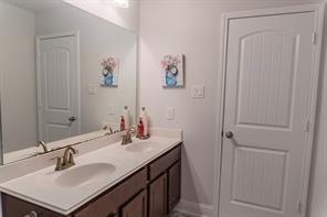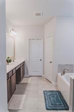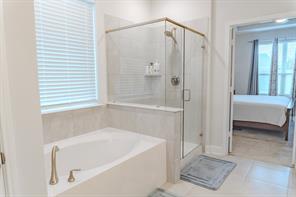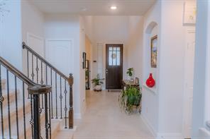 Discover modern living at its finest in this beautifully designed two-story, four-bedroom, 2.5-bath home. The open-concept layout features a stylish kitchen with granite countertops, a spacious island illuminated by pendant lighting, and a sleek single-bowl under-mount stainless steel sink—perfect for entertaining and everyday living. Enjoy cozy evenings in the family room, complete with a contemporary linear electric fireplace. Luxury tile flooring flows seamlessly through the main living areas and all wet spaces, combining elegance with durability. Retreat to the spacious primary suite, featuring dual vanities, a relaxing garden tub, and a separate walk-in shower for a spa-like experience. Additional home highlights include a water softener system throughout, a built-in trash bin, and full gutters surrounding the home. Step outside to a generous backyard—ideal for outdoor activities or future landscaping dreams. Conveniently located just minutes from Hwy 288.