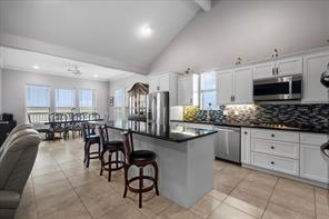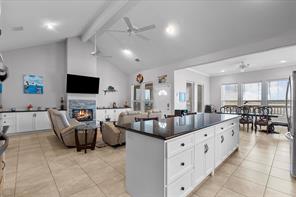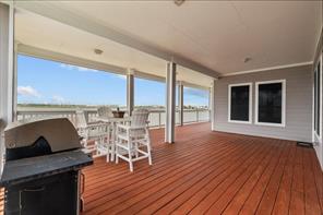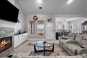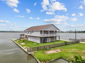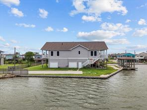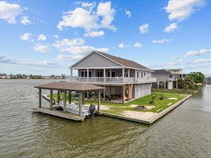 Welcome to your waterfront retreat! Situated on a rare double lot at the end of the street on a point, this beautiful 3-bedroom, 2.5-bath home offers privacy, panoramic views, and bay access with a private boat slip. Every bedroom opens to the expansive wraparound porch—perfect for soaking in coastal breezes and outdoor living. Inside, enjoy 2,213SF of thoughtfully designed space with an open-concept layout, vaulted ceilings, and a cozy fireplace. The kitchen features granite countertops, white cabinetry, a breakfast bar, and stainless-steel appliances. The spacious primary suite includes a luxurious bath with dual vanities, a soaking tub, and a walk-in shower. Additional features include a whole-home Generac generator and a cargo lift for added convenience. Whether you’re entertaining on the covered patio or enjoying peaceful sunsets, this 2014-built home is ideal for full-time living or a weekend escape!
