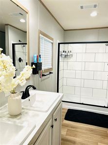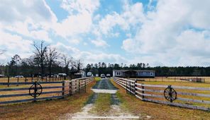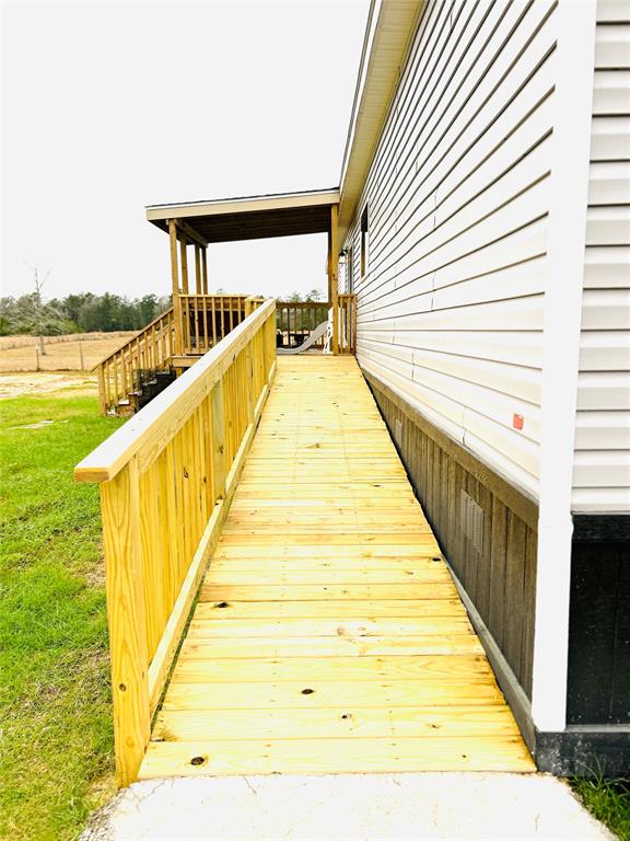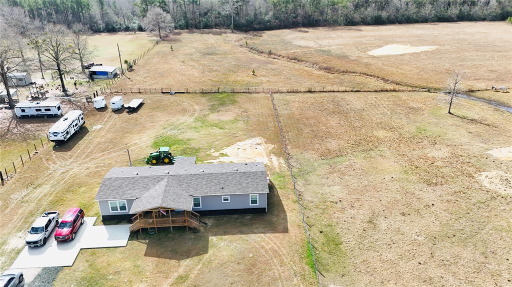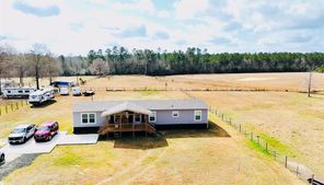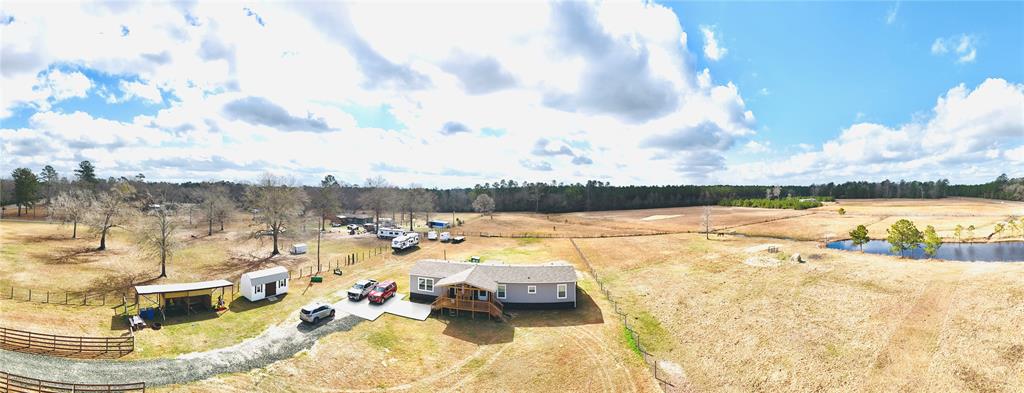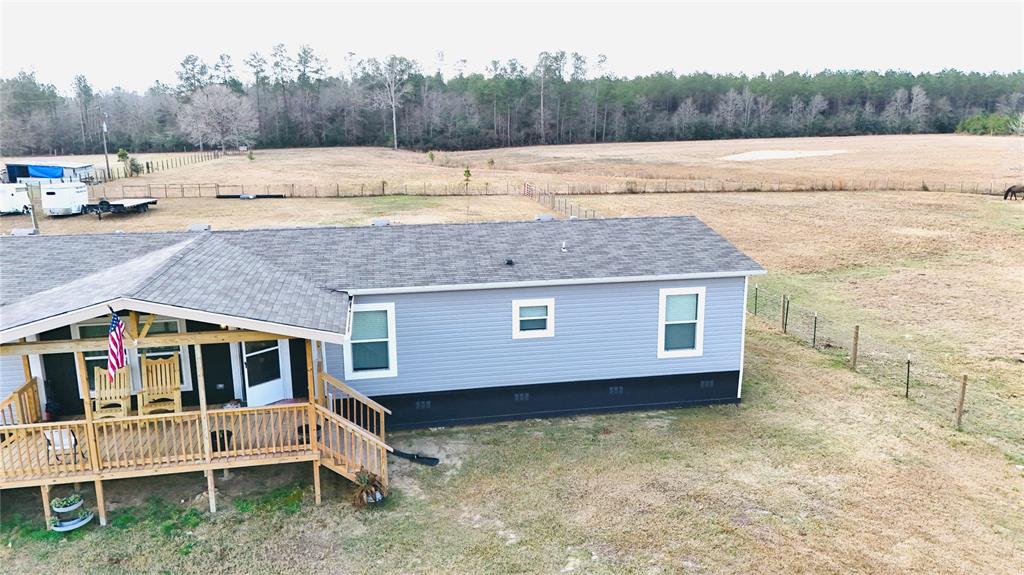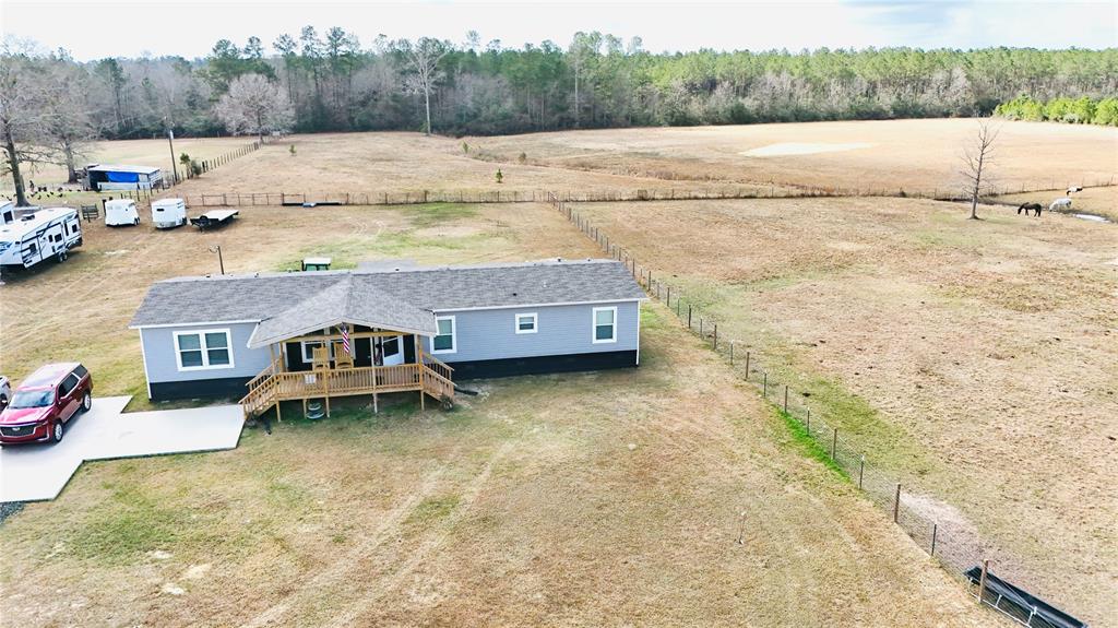 Country living at its best in this serene country side new manufactured 2024 home, sitting in almost 13 of cleared lush space and a stocked pond for those who have a passion for the outdoors & quiet fishing days, pond stocked with large mouth sea bass and bluegill fish. Home sits in fully fenced acreage with a secure gate and separate fenced areas for farm animals and or horses. Property has a covered space with 2 horse stalls & 2 additional covered spaces. This home is practical & funcional, has 4 bedroom 2 full bathrooms & a flex room for home office if needed. If you like sitting out site to enjoy the beauty of nature, you have a choice of enjoy any of the front or back covered porches. The back porch has a completely new spacious wheelchair ramp. Home has smart paneling all around and is secured by 12 inch cement runners. There is only one way to get the full experience of this property and that is by visiting in person so don't miss out, schedule your showing today.
